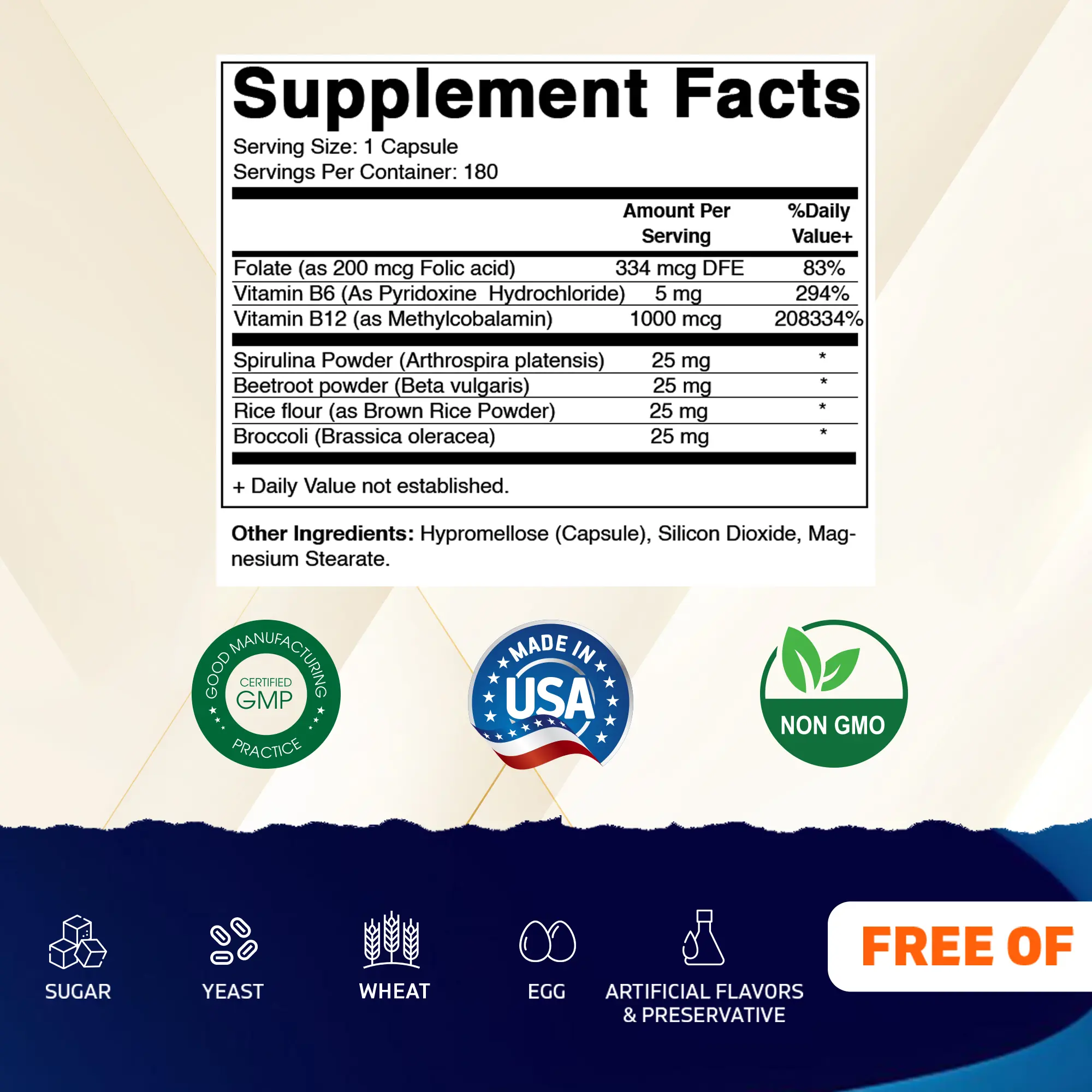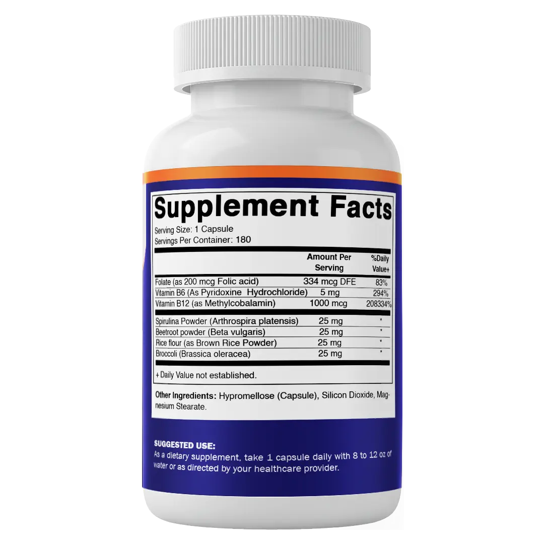 ·Spirulina, Beet Root, Broccoli, Brown Rice: Additional nutrients for comprehensive health.