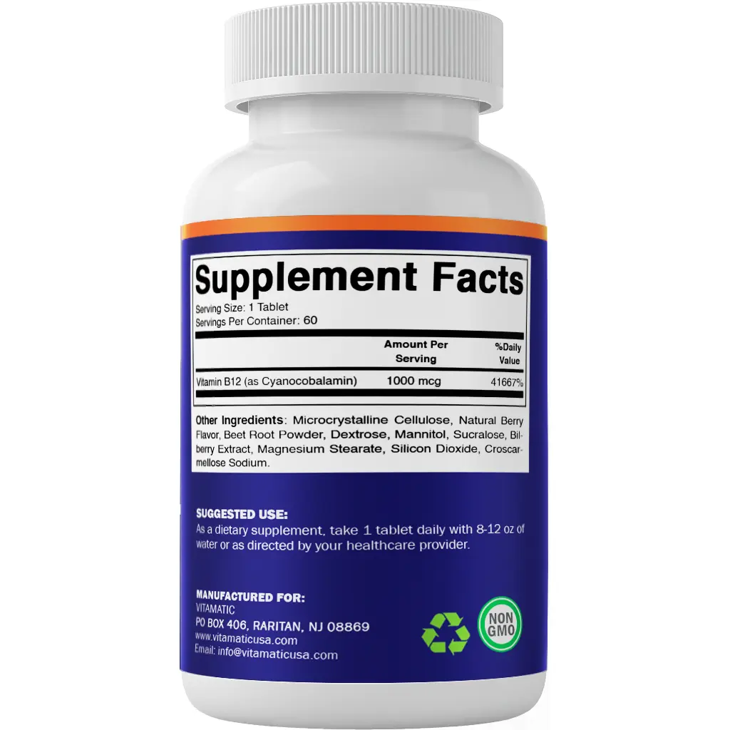 5. Vitamatic Vitamin B12 1000 mcg Fast Dissolve 60 Tablets Natural Berry Flavor Supports Energy Metabolism & Nervous System Health GMP Certified U.S.A Made
