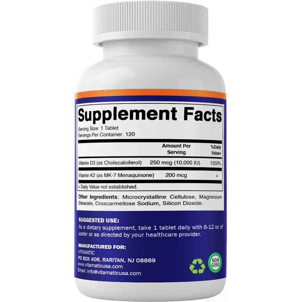 ·High Potency: Each tablet contains 10,000 IU of Vitamin D3 and 200 mcg of Vitamin K2 (MK-7), delivering maximum support for your bone, heart, and immune health.