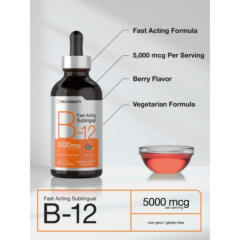 Support your wellness routine with Horbaach Fast Acting Sublingual B-12! This highly innovative, vegetarian formula provides 5,000 mcg of Vitamin B-12 per serving (as Cyanocobalamin and Methylcobalamin) in berry flavor. It's gluten-free and non-GMO, making it a great choice of B-12 for adult men and women everywhere!