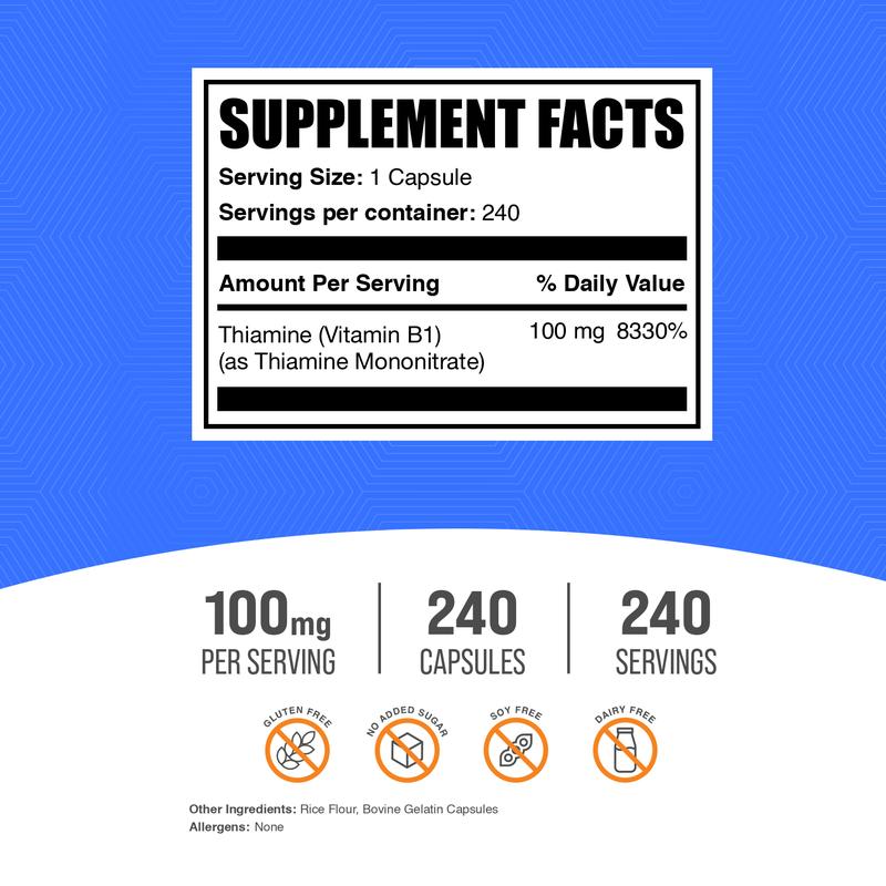 Elevate your overall health and vitality with our premium Vitamin B1 Thiamine Mononitrate capsules. Expertly crafted to support your overall well-being, these capsules are designed to play a crucial role in maintaining a healthy lifestyle.