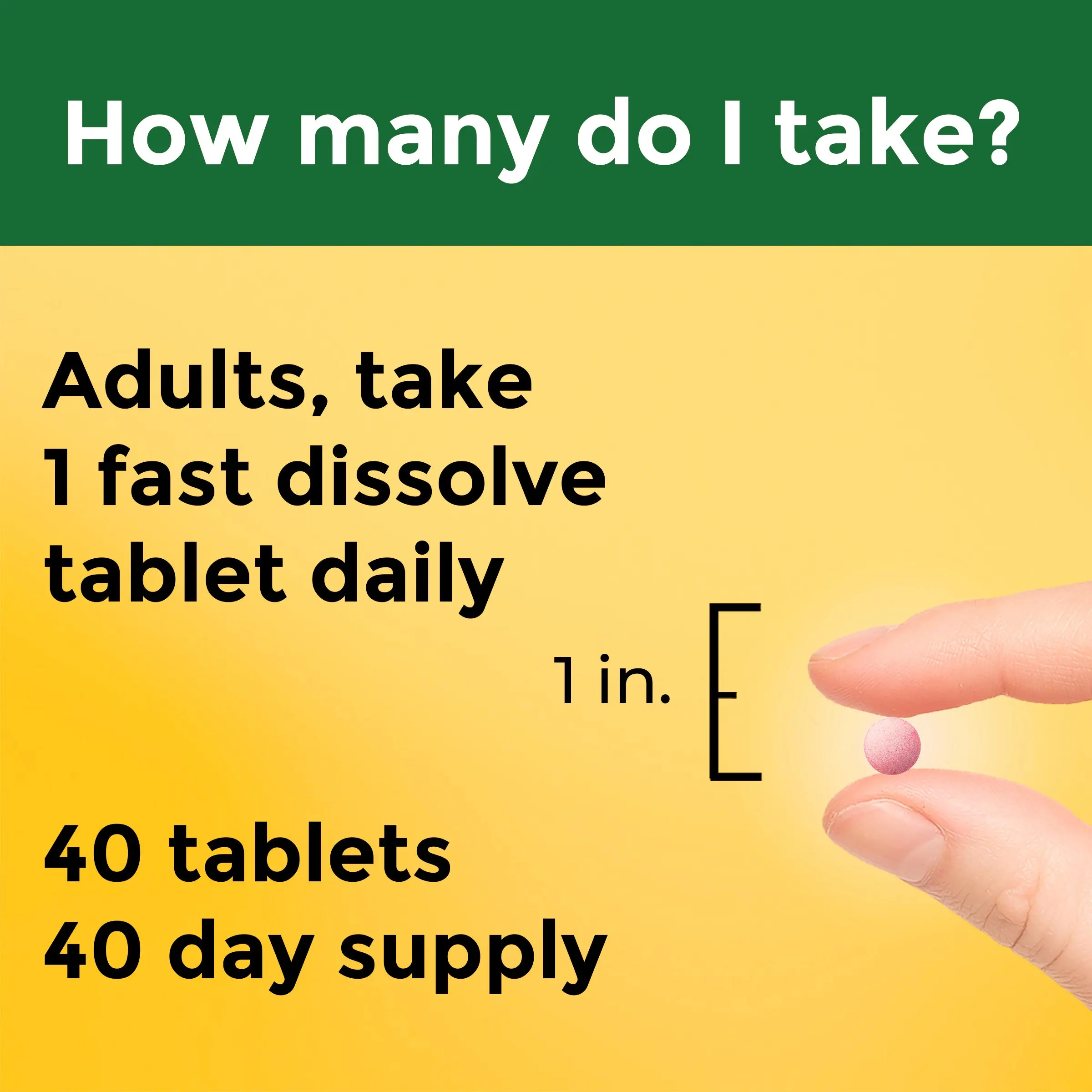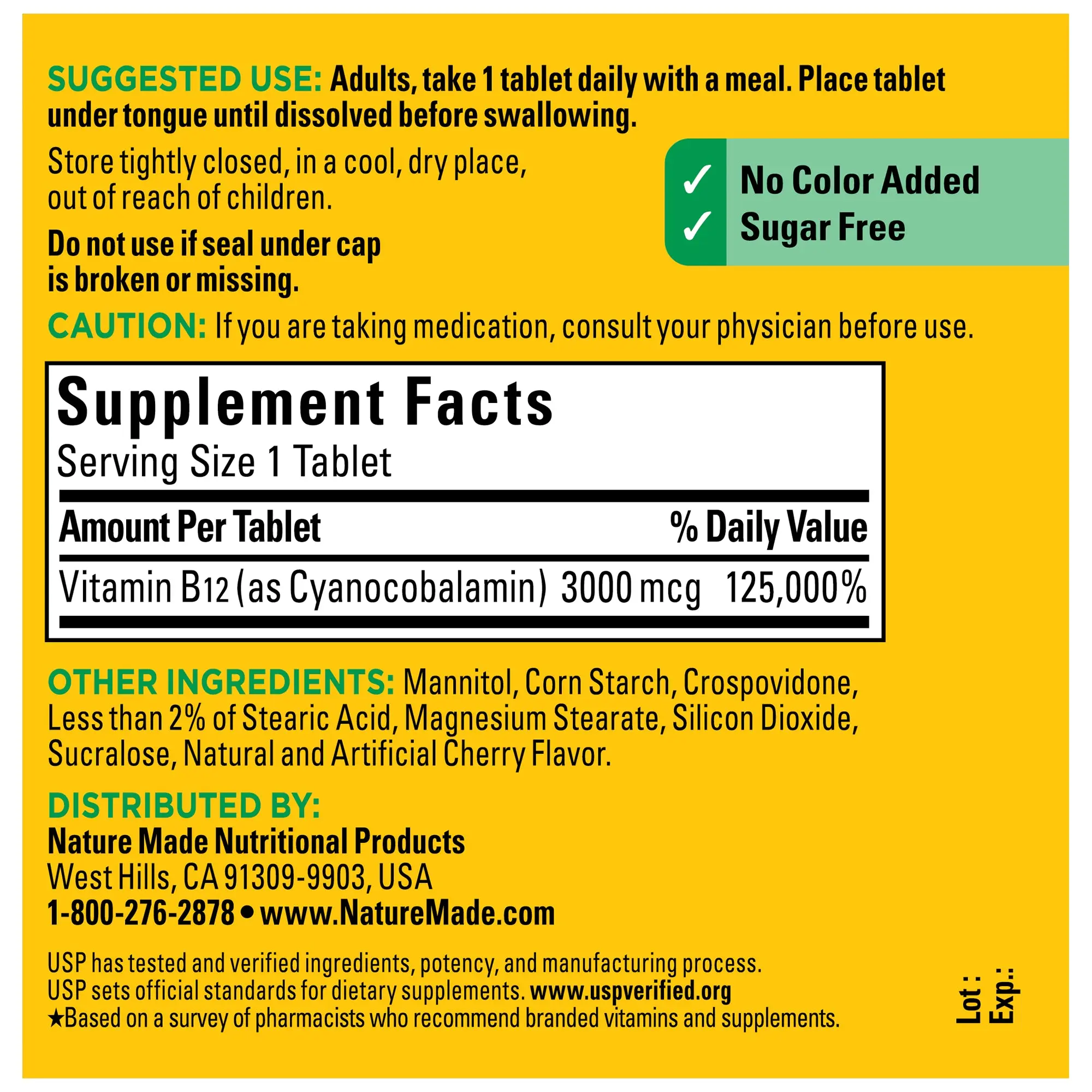 Try a tasty way to get some Vitamin B12 in your diet with Nature Made® B12 sugar-free fast dissolve tablets. For a daily dose of 3000 mcg, simply dissolve one tablet under the tongue before swallowing.†