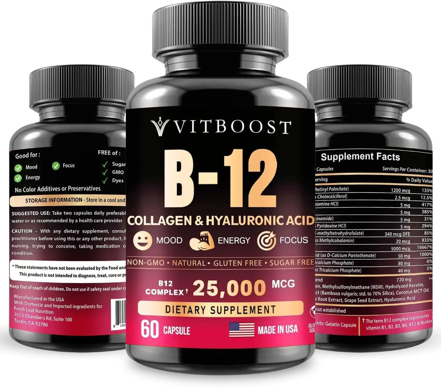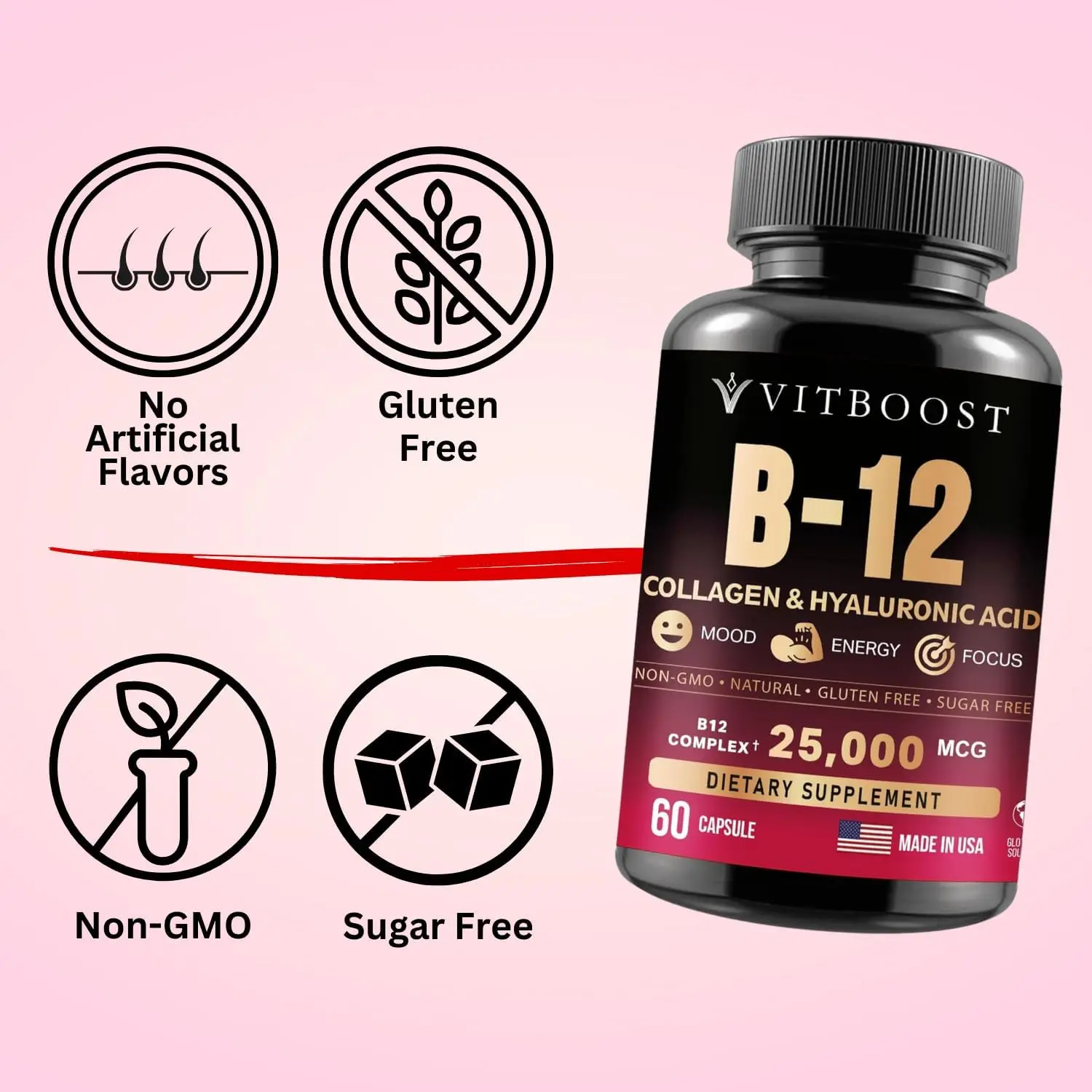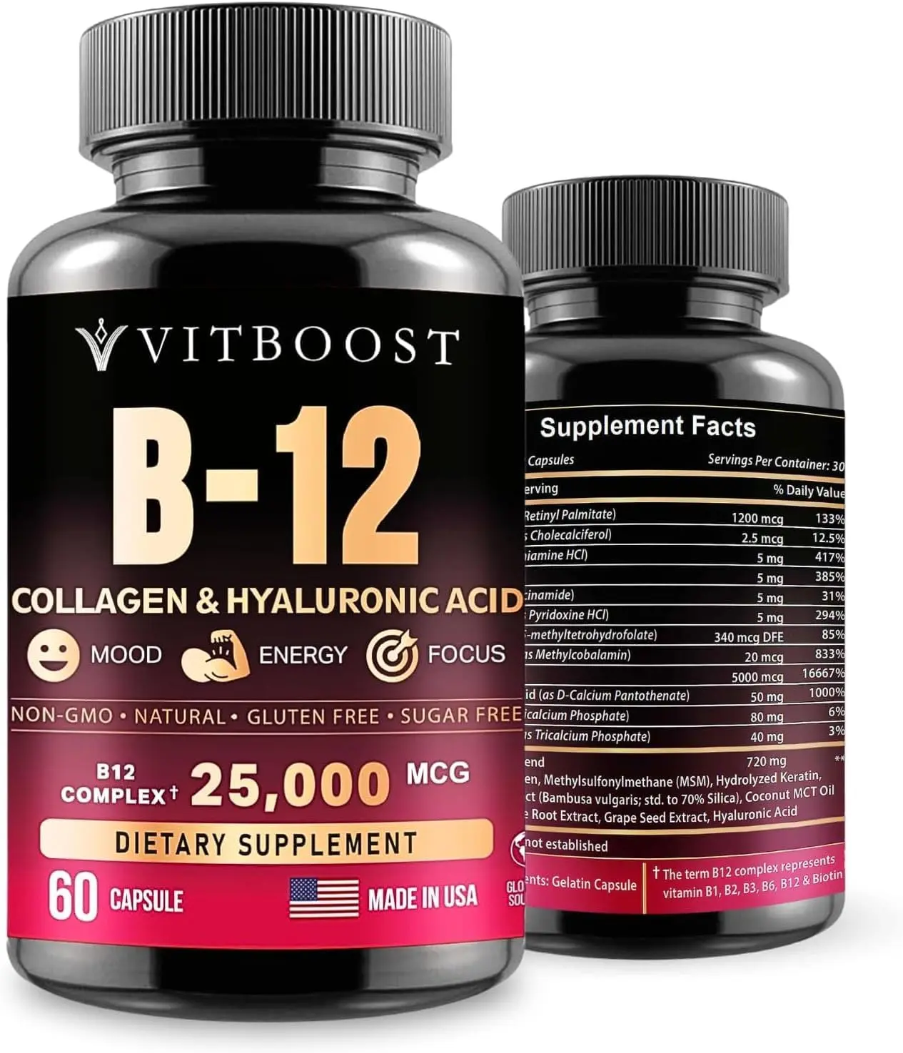 ️BOOST ENERGY LEVEL; with VitBoost B12: Vitamin B12 helps in energy production by supporting the adrenal glands, and converting carbohydrates to glucose.Vitamin B12 supplement is the fuel your body uses for energy. If you are constantly tired, this may be in result of not getting enough Vitamin B12. Stay alert and energized throughout the day by helps your energy levels with B12.