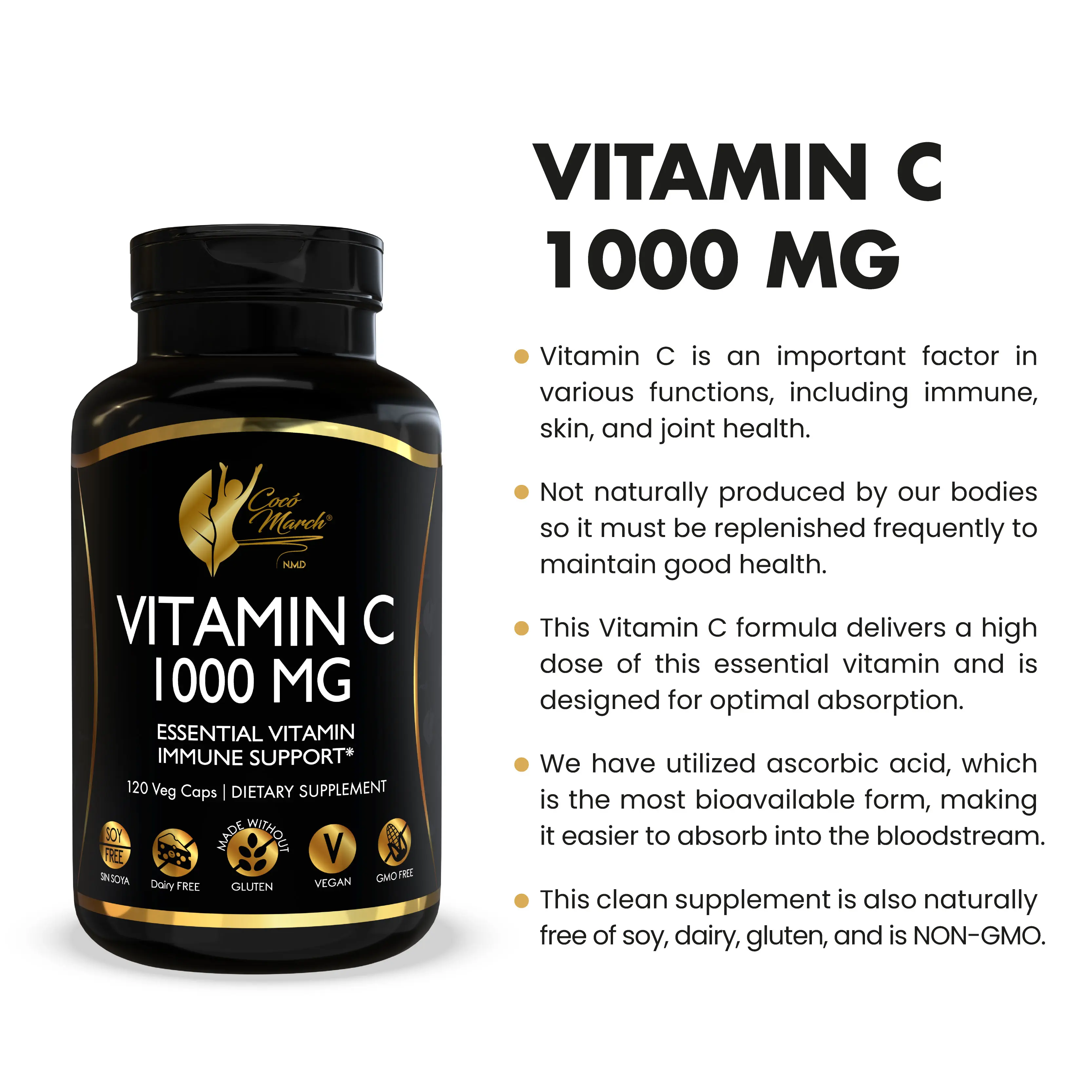 A high-strength Vitamin C supplement designed to support immune health, skin vitality, and overall wellness. Packed with 1000 mg of potent Vitamin C per serving, this antioxidant-rich formula helps protect cells, promote collagen production, and maintain daily health.