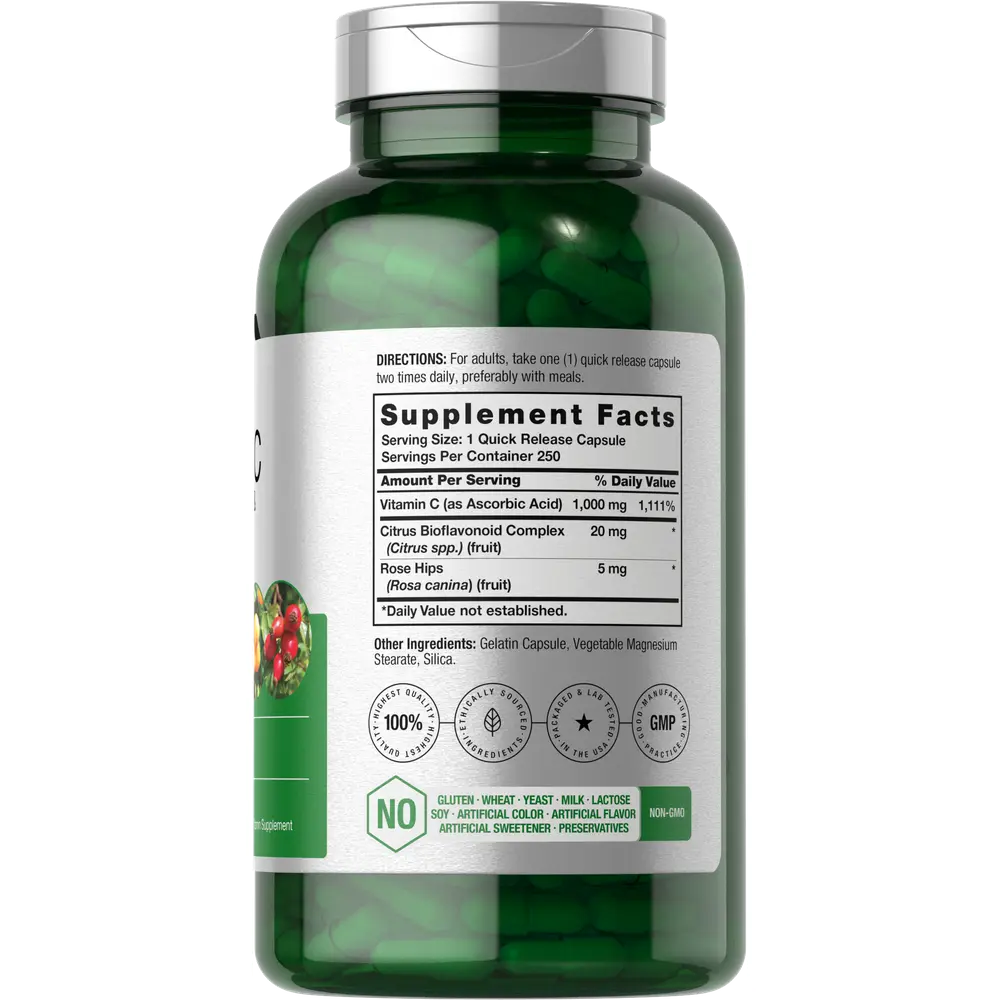 Horbaach's high dose formula features 1,000 mg of Vitamin C plus a Citrus Bioflavonoid Complex and Rose Hips for additional support. Quick release capsules are gluten free and non-GMO, made with no artificial flavor or preservatives, delivering the exceptional quality adult men and women deserve. Enjoy Horbaach's 250-day supply today!