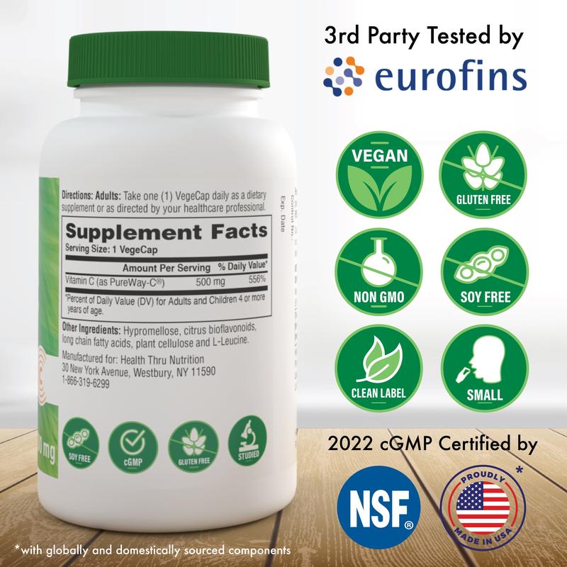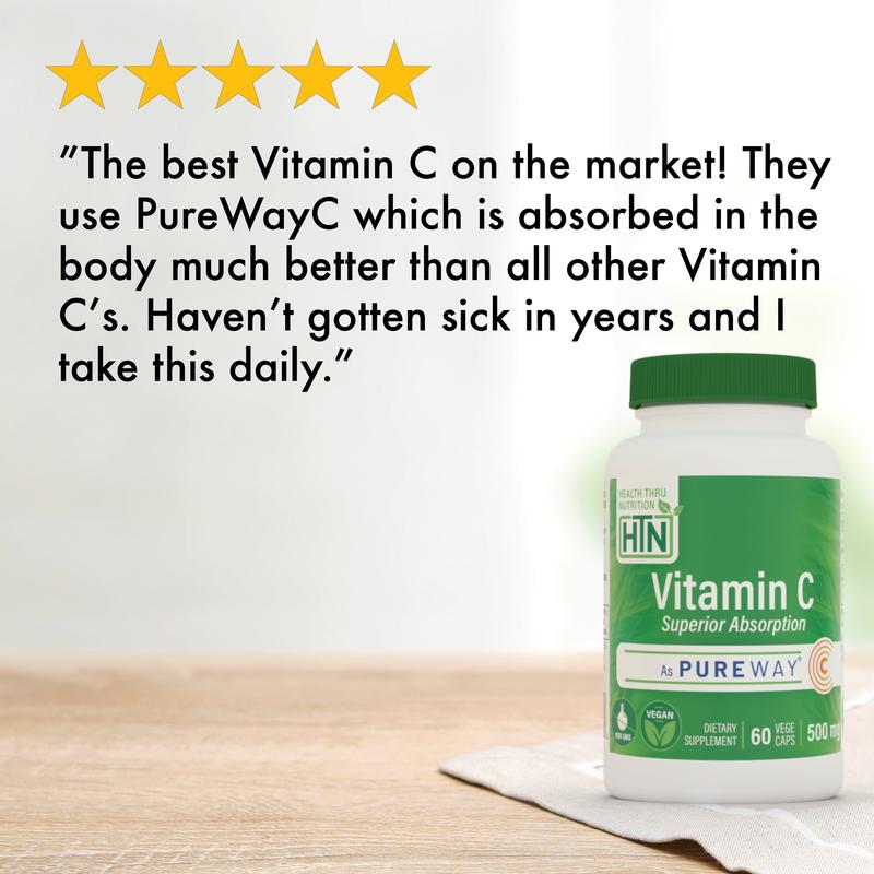Health Thru Nutrition Vitamin C – 500mg as PureWay-C® | Natural High Absorption Immune & Antioxidant Support