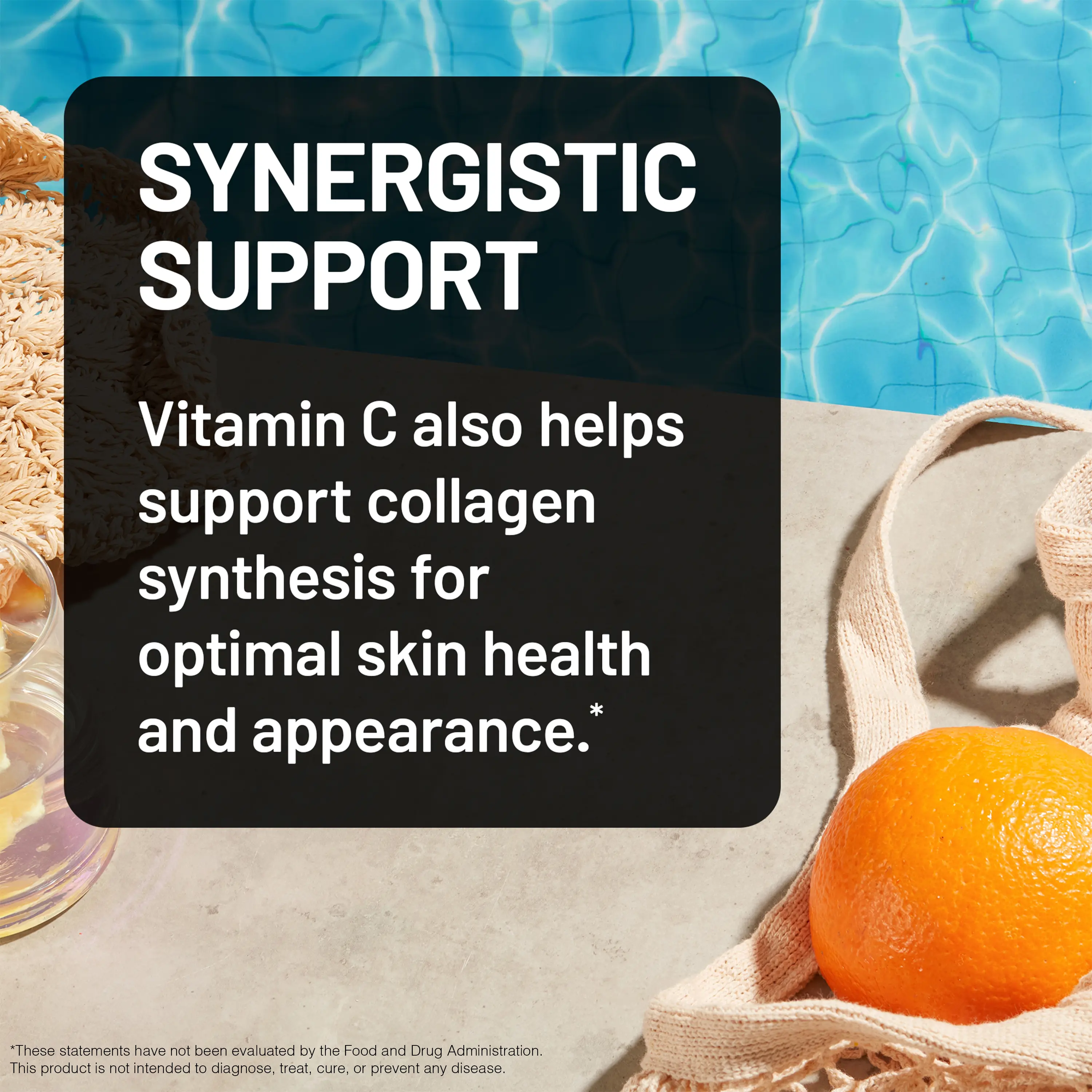 ¡COLLAGEN SYNTHESIS SUPPORT: Vitamin C helps support collagen synthesis for optimal skin health and appearance.*
