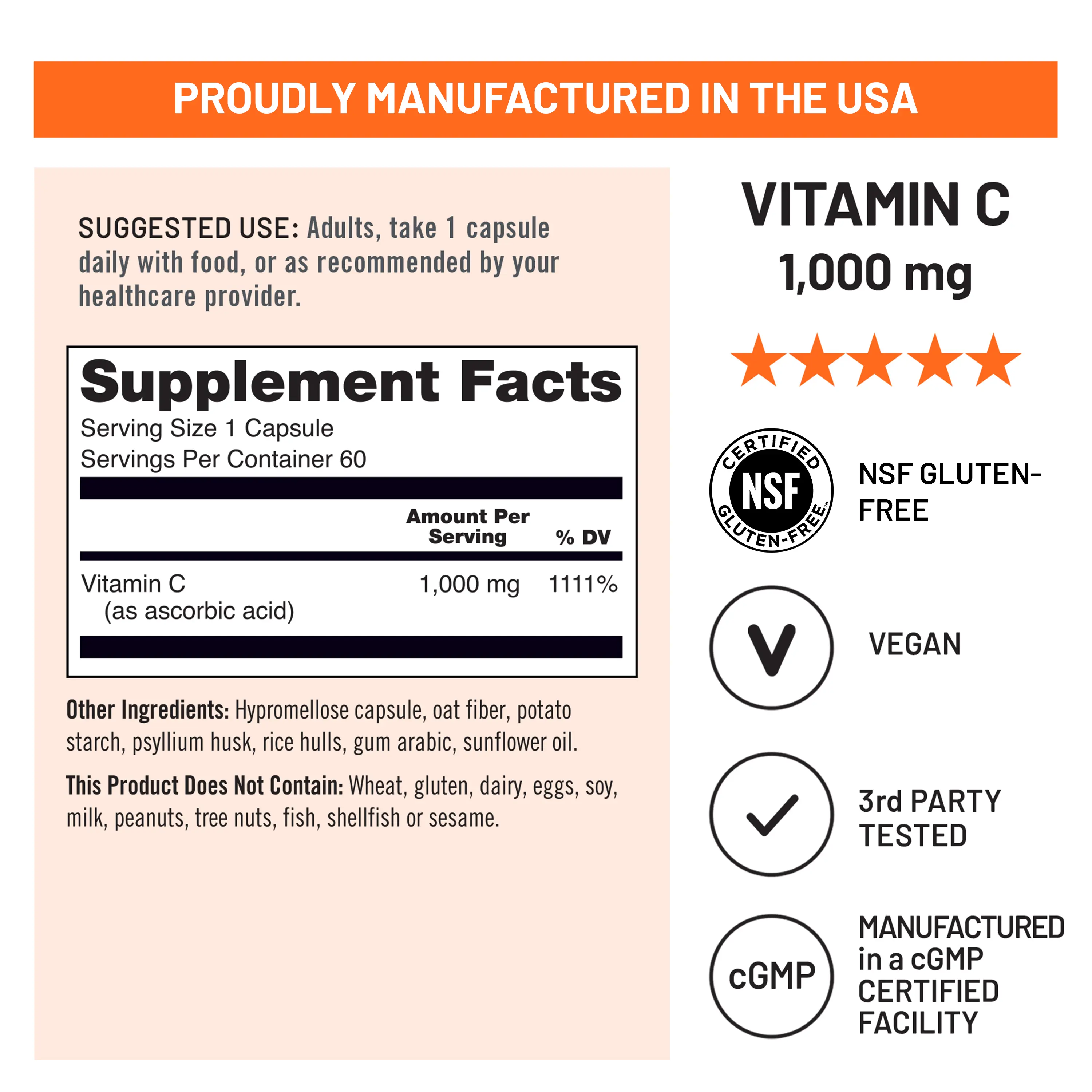 ¡VEGAN & NON-GMO: NatureWise Vitamin C 1000 mg Capsules are vegan, non-GMO, and gluten free. These premium capsules do not contain wheat, gluten, dairy, eggs, soy, milk, tree nuts, peanuts, fish, shellfish, or sesame.