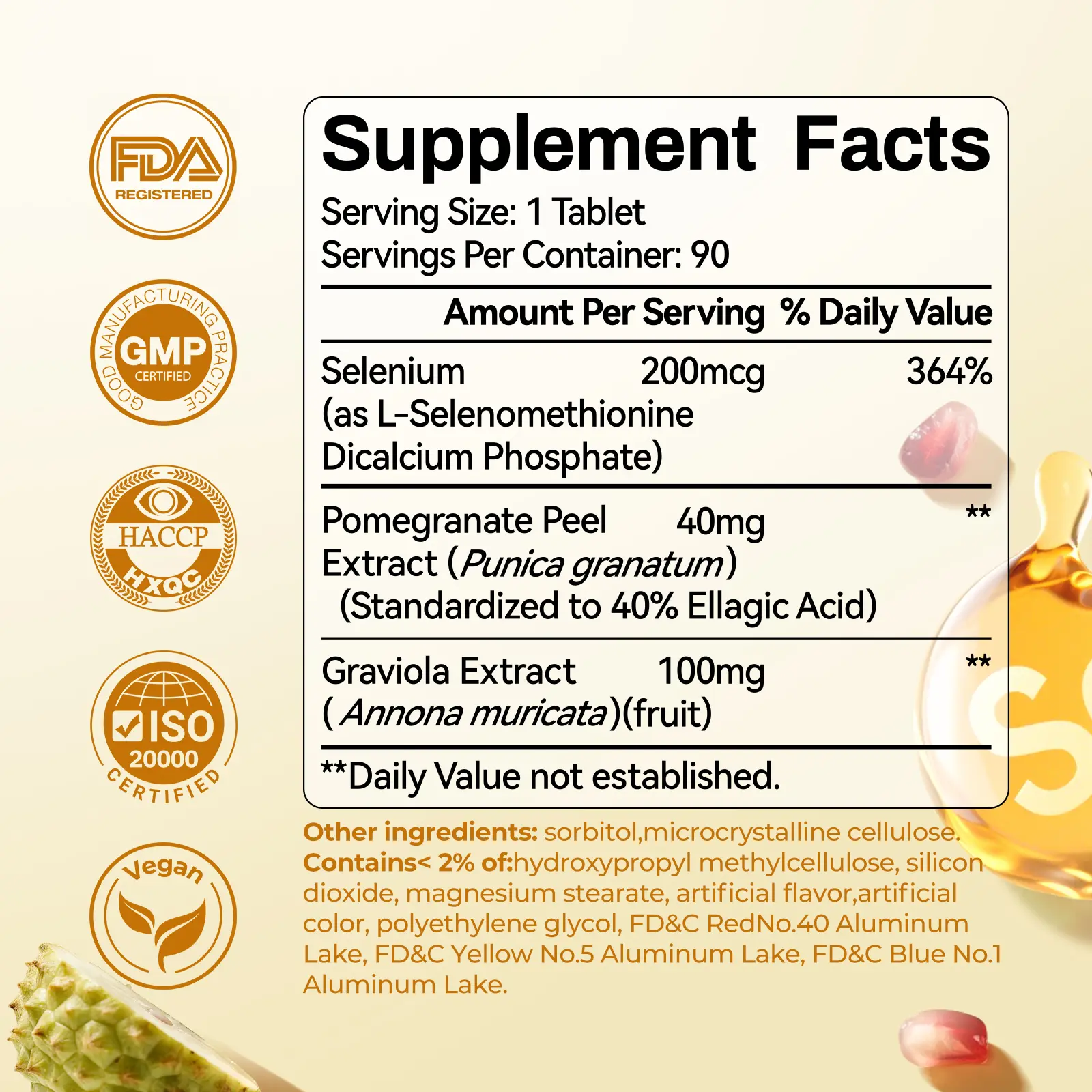 No preservatives, vegan friendly, gluten-free, sugar-free, made in a GMP-certified facility.
