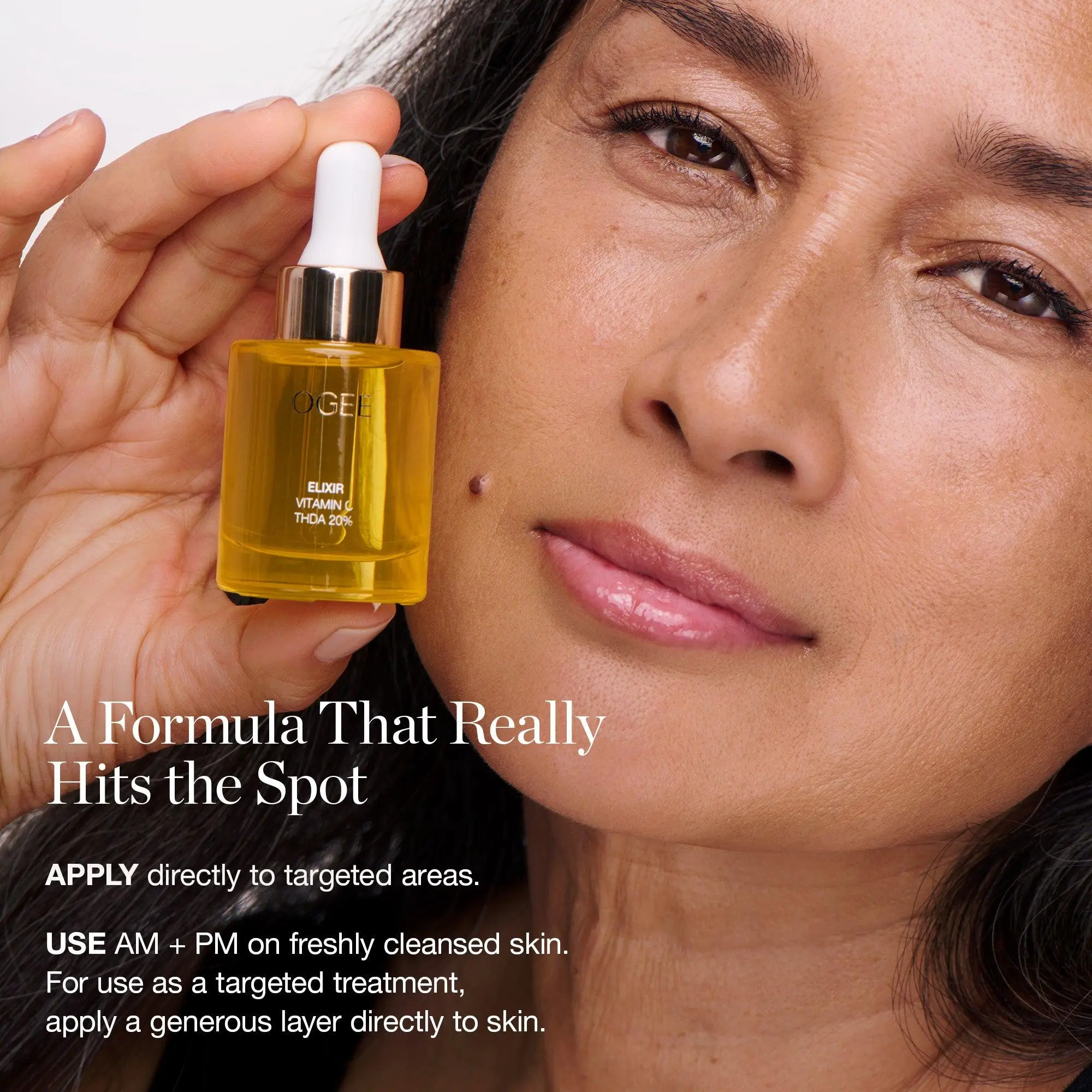NEW! A powerful plant-based Vitamin C concentrate that targets dark spots for visible improvement of complexion, amplified radiance, and brighter skin.The percentage in the product title signifies the strength of the concentrated dose of the active ingredient within our formulation. Our Vitamin C THDA Elixir utilizes a 20% strength Vitamin C -- Tetrahexyldecyl Ascorbate (THDA) – which is a lot more potent when compared to the average 15% strength inclusion of common Vitamin C ingredient, L-Ascorbic Acid. Non-irritating, oil-soluble THDA is the superior form of Vitamin C, as it is more powerful, stable, and biocompatible than its water-soluble, unstable counterpart.Apply directly to targeted areas or blend to boost other products. Use AM + PM on freshly cleansed skin. For use as a targeted treatment, apply a generous layer directly to skin. To boost the efficacy of compatible products, blend a few drops in the palm of your hand to any of the following: