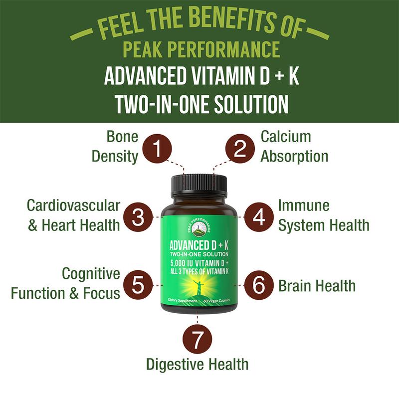 ·Don't Be Fooled By Cheap Imitations - Most brands only give Vitamin D and miss out on it's important combination with Vitamin K. Peak Performance specializes in Vitamin D with ALL 3 TYPES of Vitamin K for supporting Strong Bones and a Healthy Cardiovascular System!*