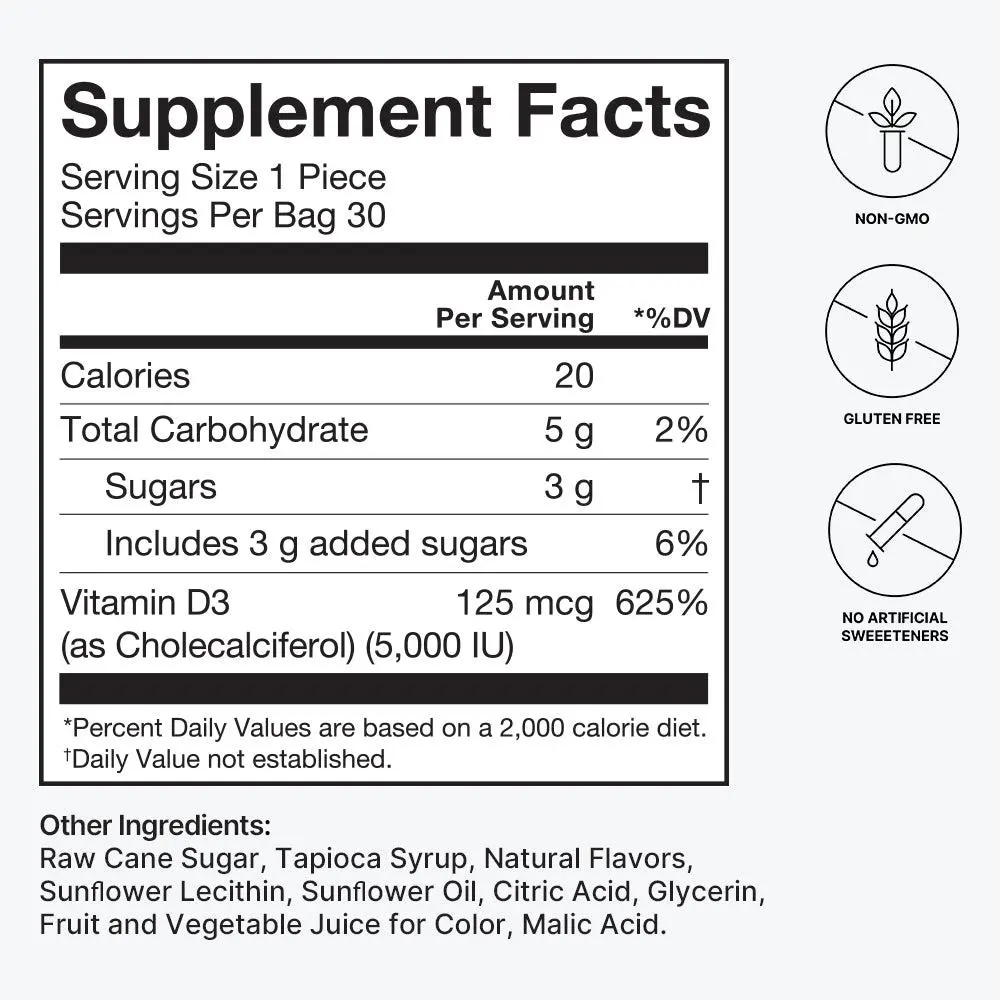 Delivers 5,000 IU of Vitamin D3 per chew