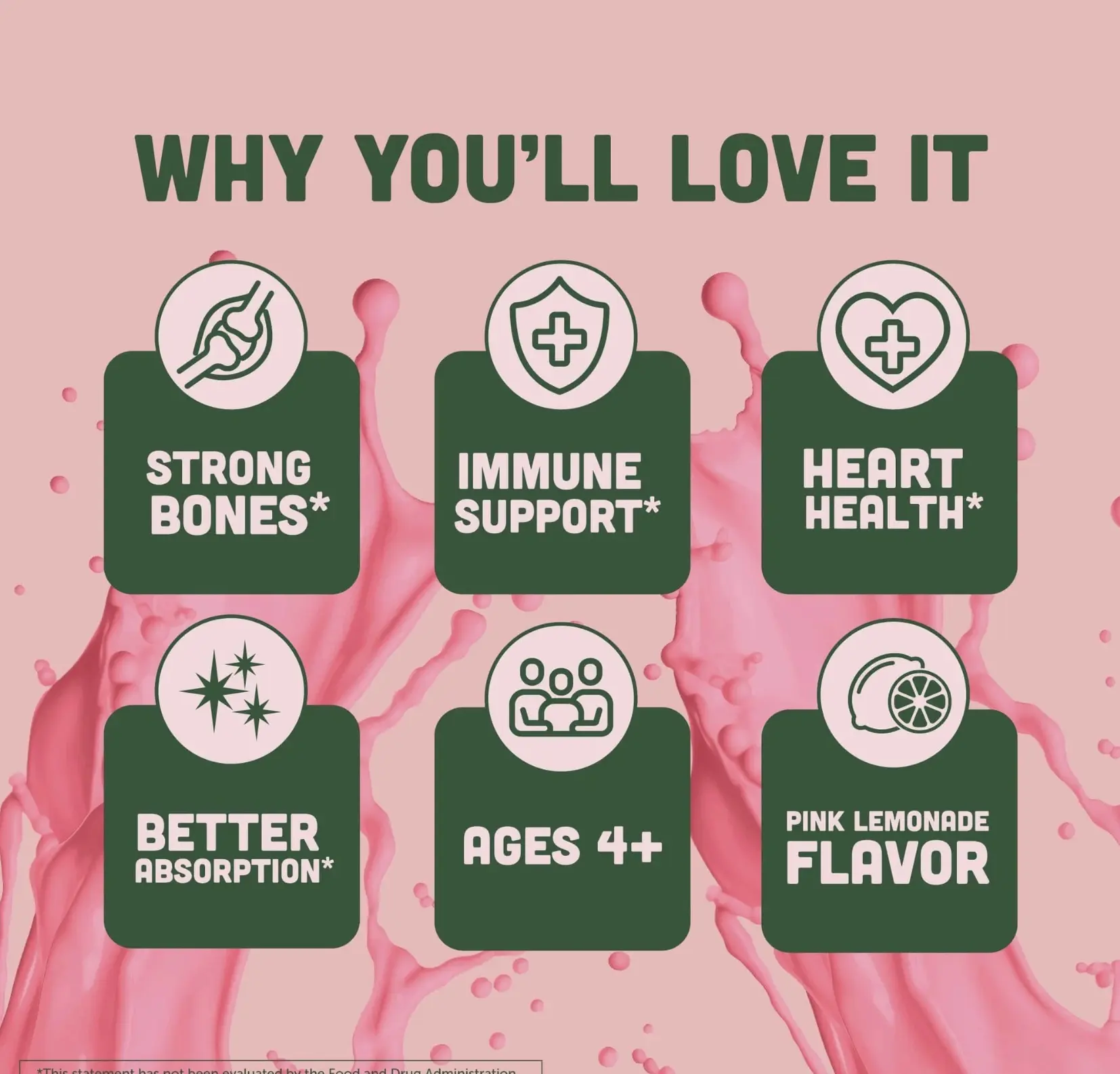·No pills, no chalky tablets — just smooth Pink Lemonade flavor