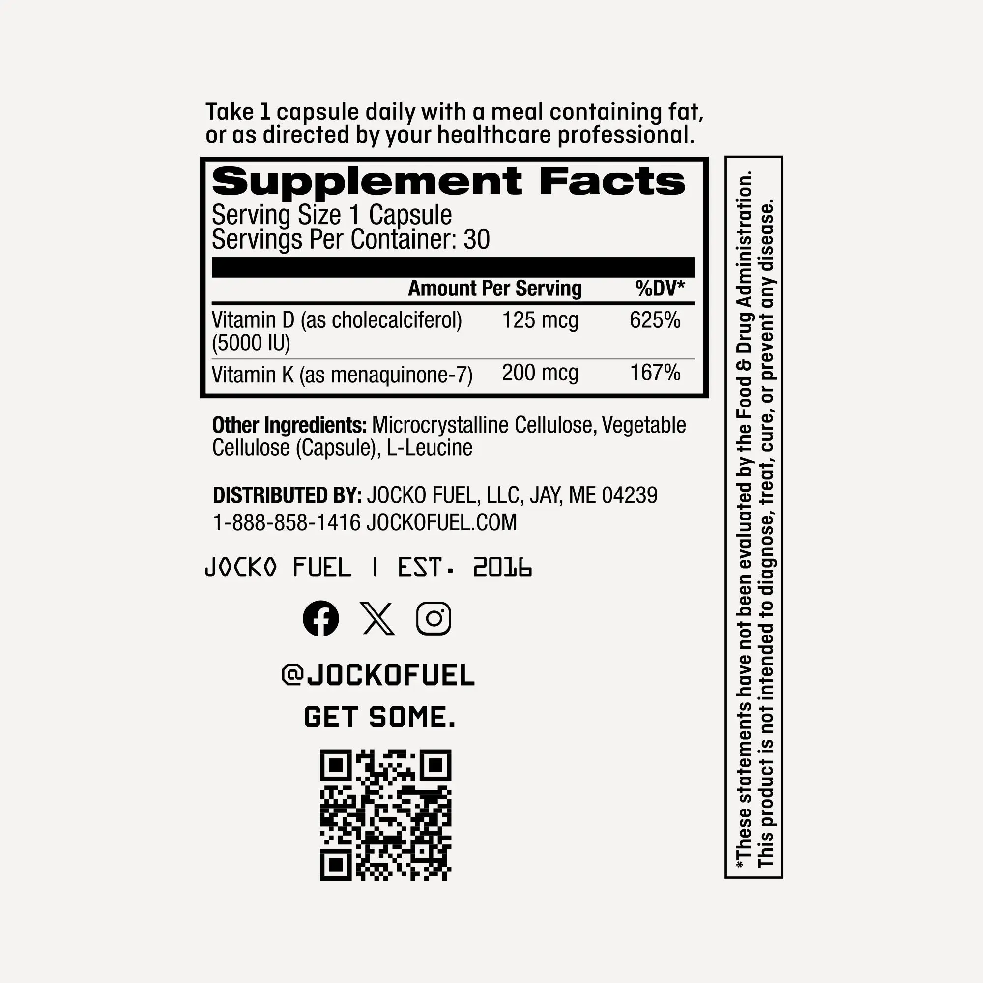 You train with intention. You live with discipline. You expect your body to show up every day — stronger, faster, more capable than yesterday. But even the most dialed-in diet can leave gaps. Vitamin D levels run low in most adults. And without Vitamin K2, the calcium you absorb doesn't always end up where it belongs. So we built a solution that works as hard as you do. This high-potency formula combines: