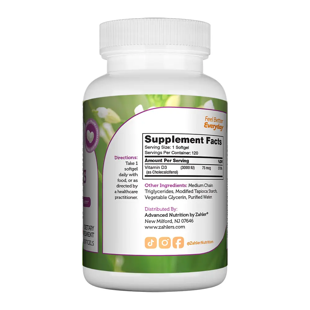 🌟 Zahler Advanced Vitamin D3 3000 IU Softgels 120 Count