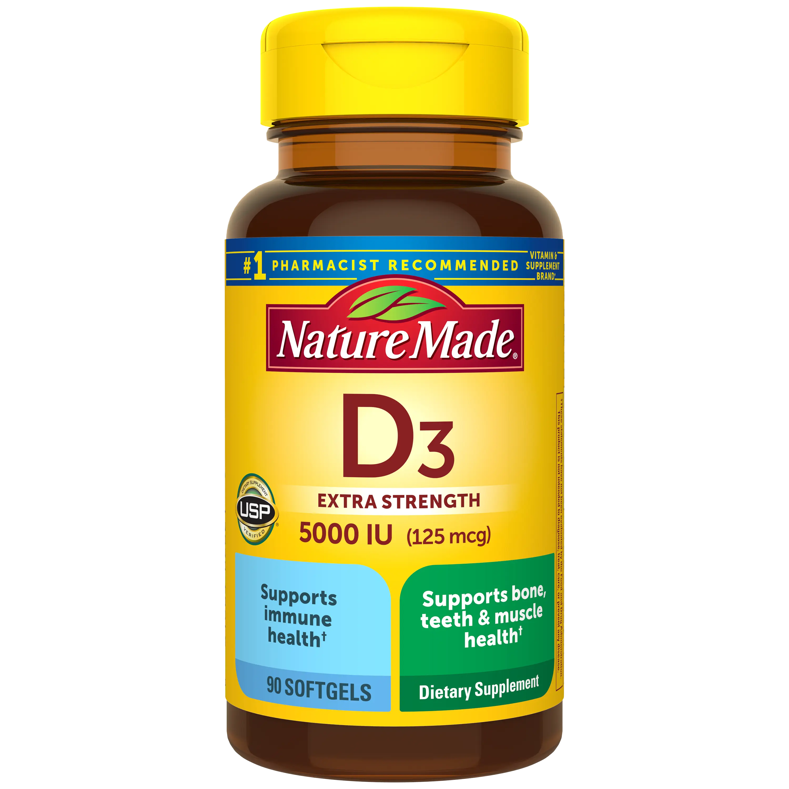 Get an extra strength dose for bone, teeth, muscle, and immune health support. Nature Made® Extra Strength Vitamin D3 is formulated with 5000 IU (125 mcg) for those with higher Vitamin D needs and/or deficiency as determined by a healthcare professional.◆†