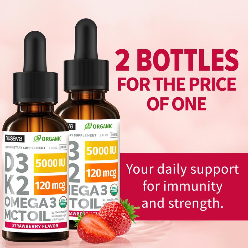 (2-PACK) Organic Vitamin D3K2 Supplement Drops with MCT Oil Omega 3, Liquid Vitamin D3 for Healthcare & Body Defenses - Non-GMO, No Fillers, 2 Fl Oz