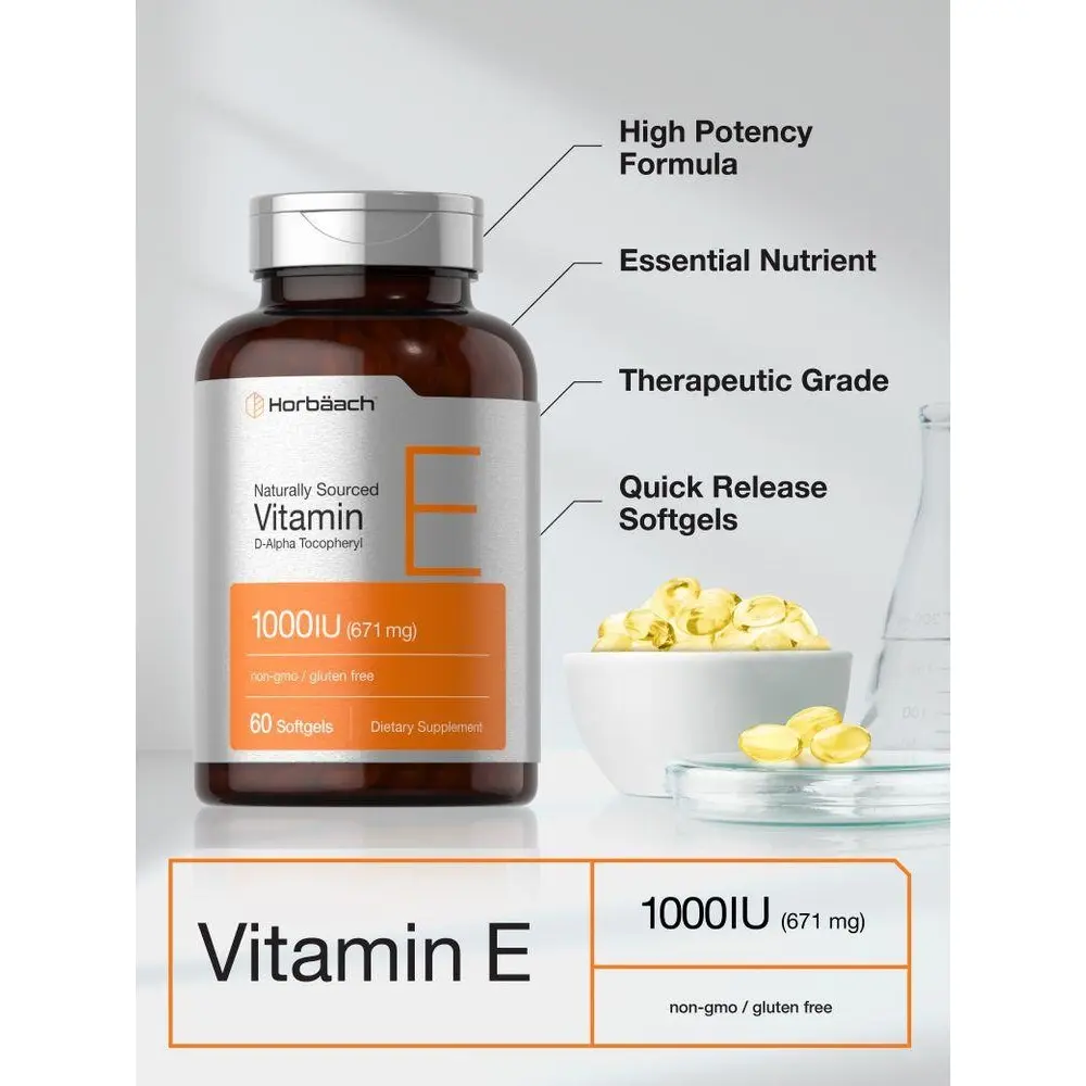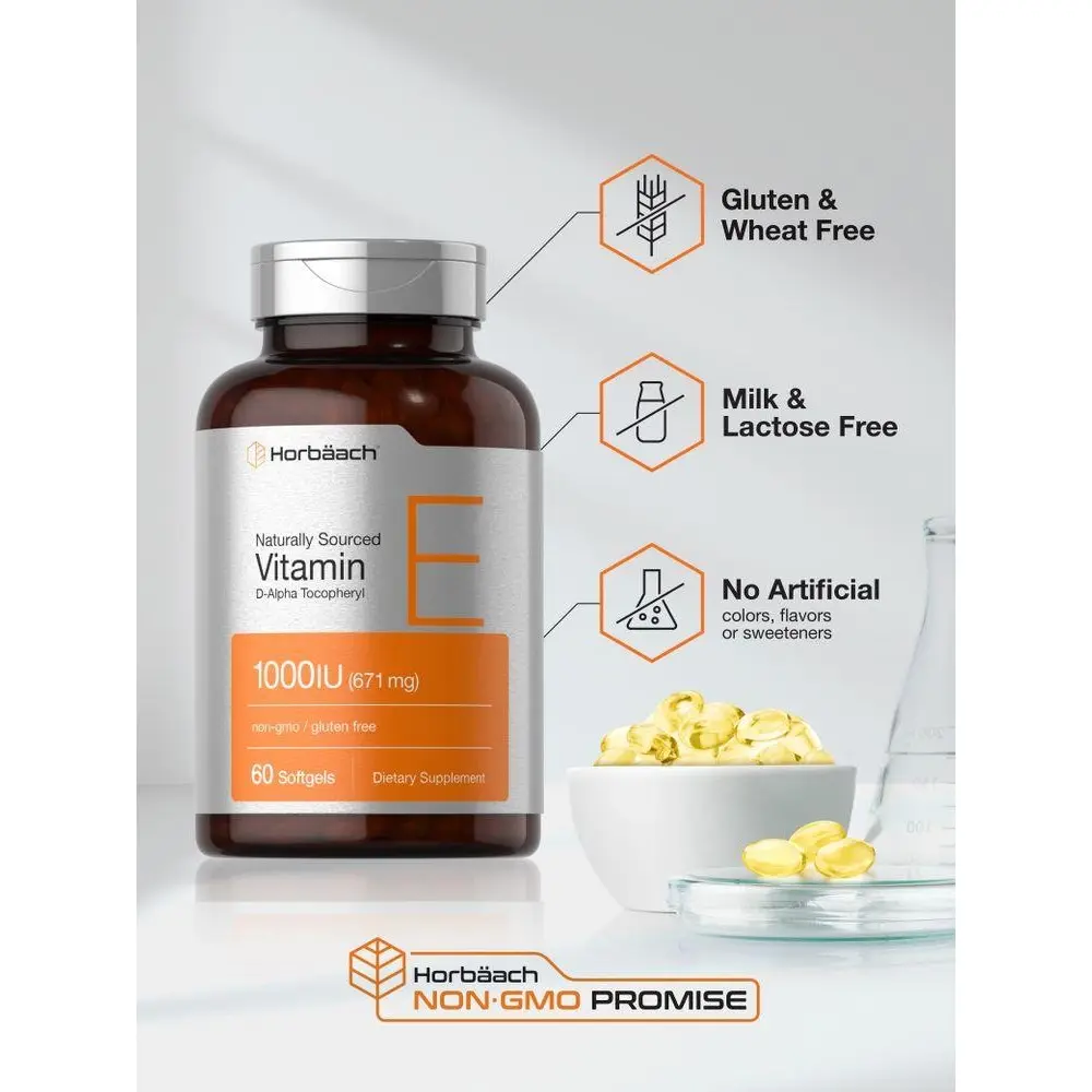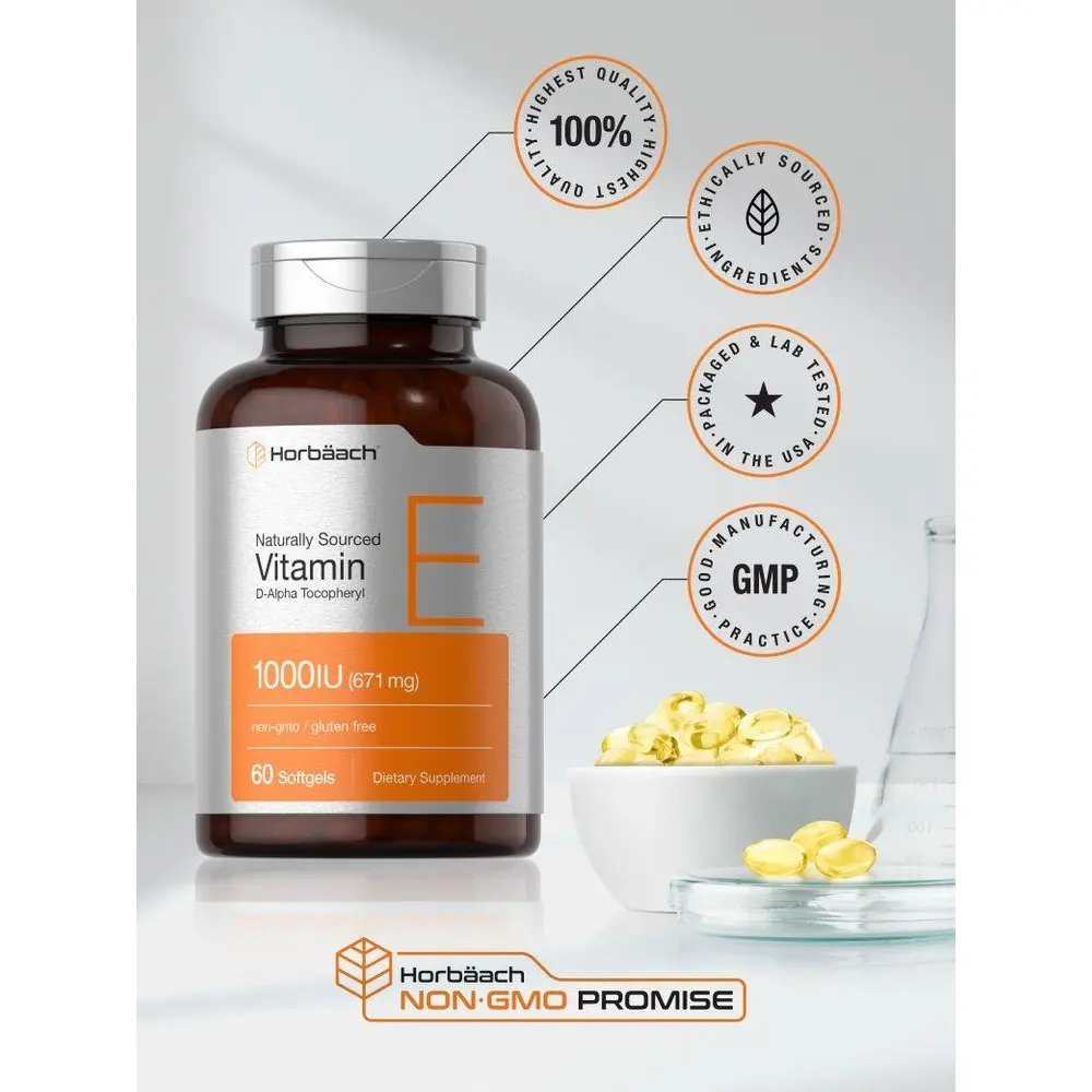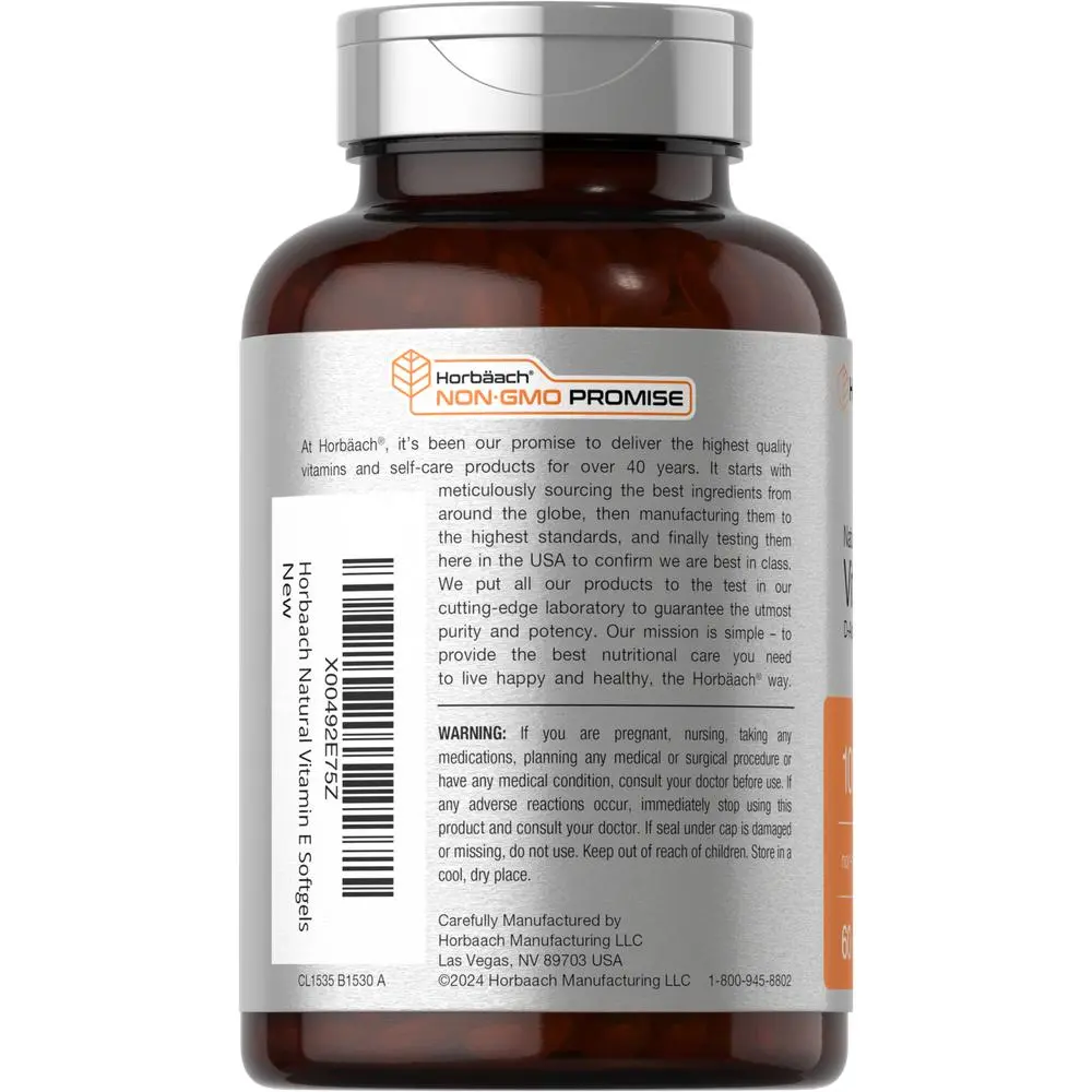 Get premium support now with Horbaach Naturally Sourced Vitamin E! Our scientifically designed formula is an excellent source of this essential nutrient, delivering 1000 IU (671 mg) of Naturally Sourced Vitamin E (as d-alpha Tocopheryl Acetate) in each quick release softgel. It’s gluten free and non-GMO, made with no artificial flavor or sweetener, making it an excellent choice of Vitamin E for adult men and women everywhere!