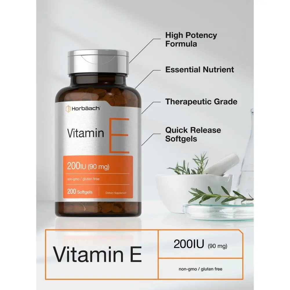 At Horbaach, our Vitamin E supplement packs a powerful supply of this essential nutrient for daily support. Each quick release softgel contains 90 mg (200 IU) per serving of Vitamin E, which is 600% of your daily value! Our formula is gluten free and non-GMO with no preservatives, making it the best choice for a balanced routine.