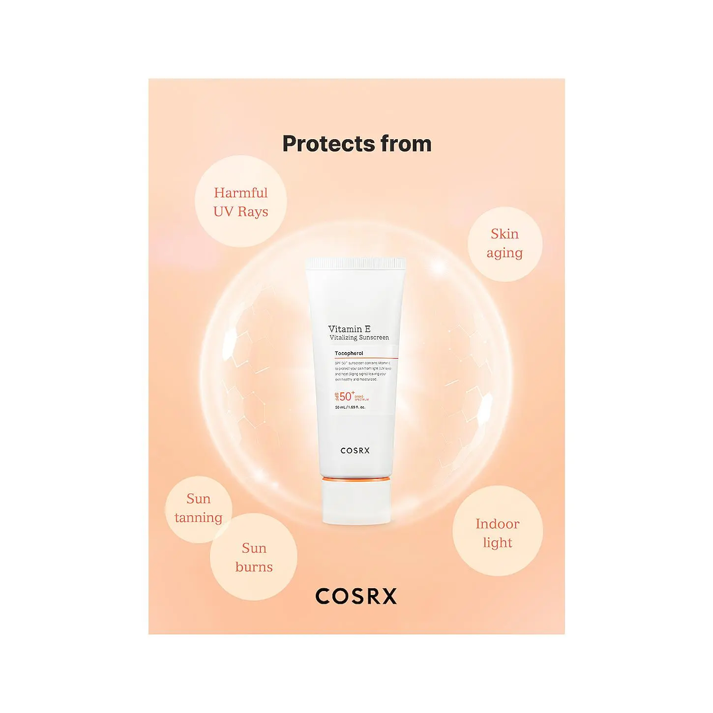 ·Sunscreen that blocks UV rays to the strongest degree formulated with vitamin E, antioxidant protection.