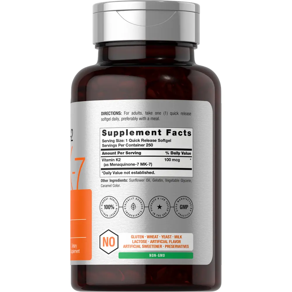 Horbäach Vitamin K2 MK7 100mcg | 250 Softgels | Non-GMO, Gluten Free Supplement