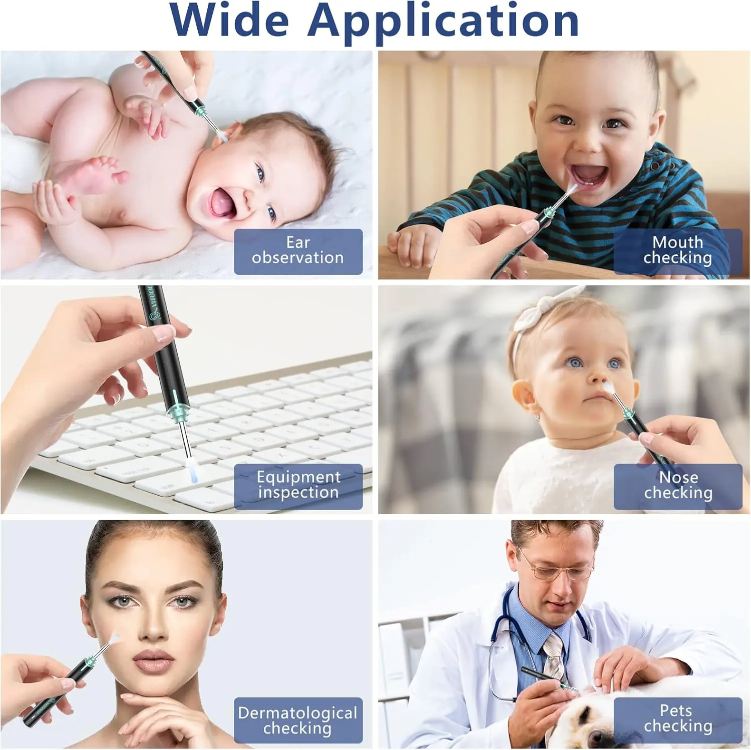 ·【Suitable small caliber】Ear tools can be used to check ear, tooth, nasal cavity, throat, scalp roots and other body parts even your pet. You can easily help the family to detect the health of their ears and remove earwax. Ear tool rear camera lens comes with IP67 waterproof grade, easy to clean with water or wipe with alcohol. (NOTE: The body of the device cannot be washed)