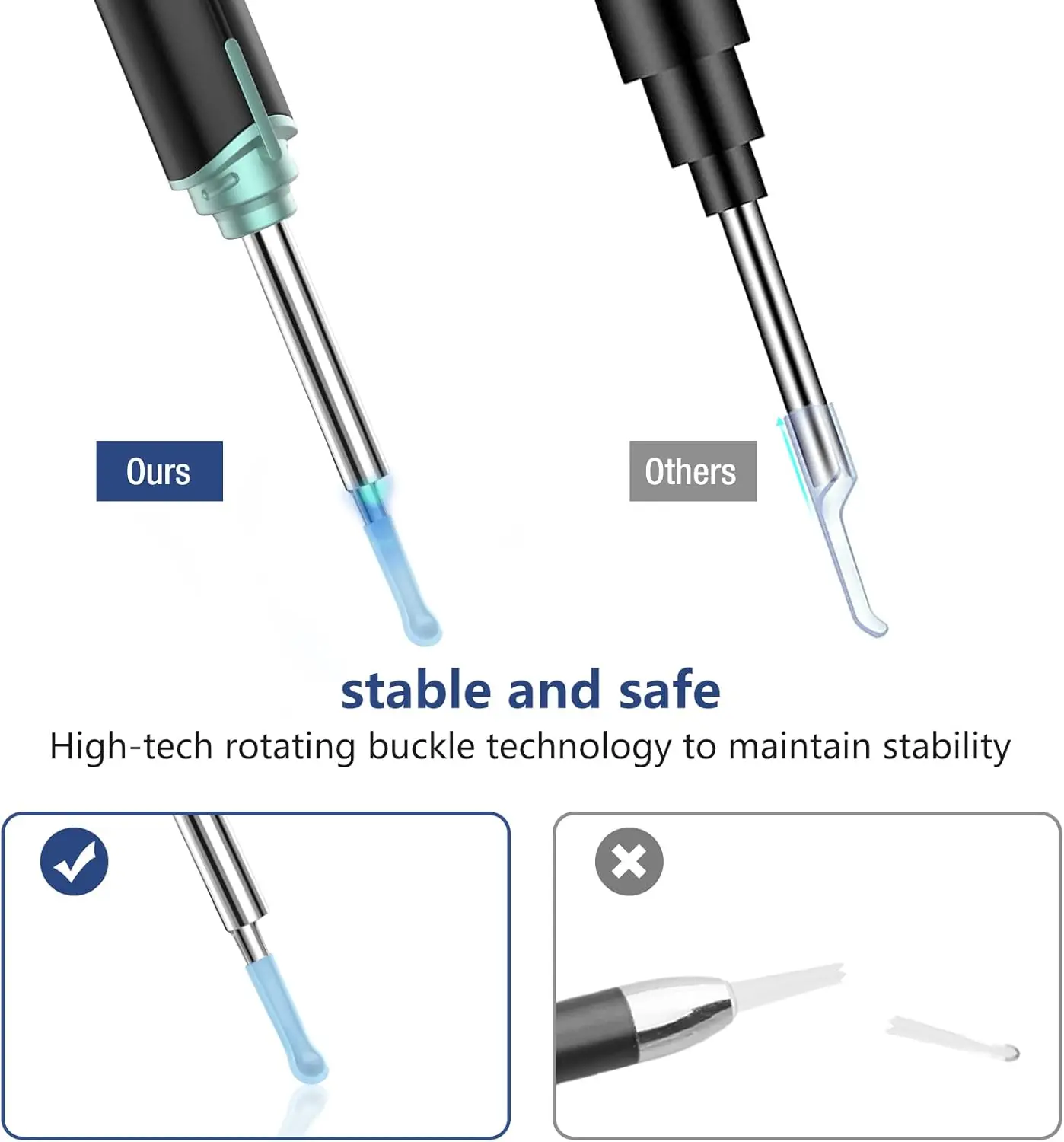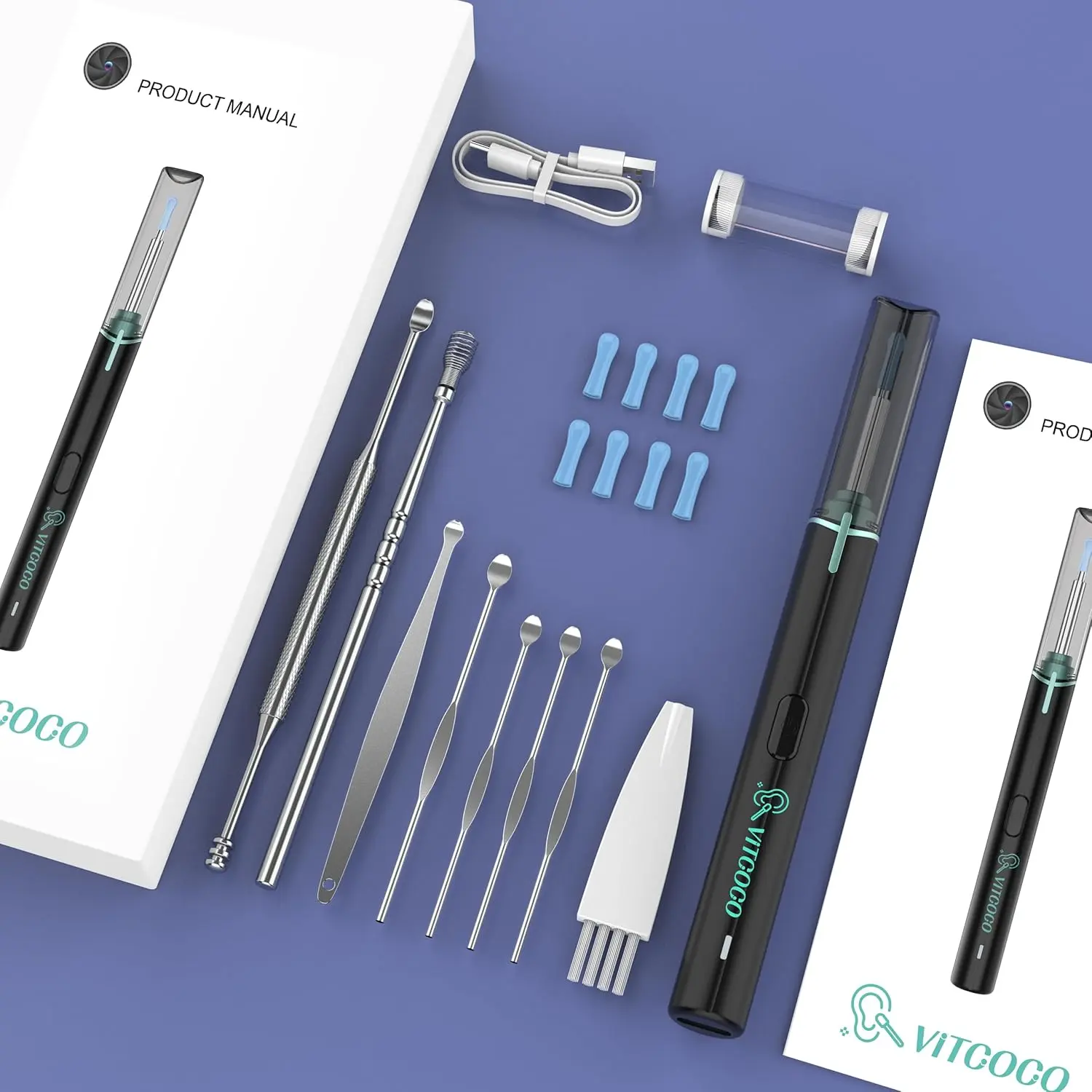 ·【Soft ear spoons】Equipped with a soft ear spoon for protecting your skin from accidental damage . The ear spoons is made of high quality material, which is neither too hard or soft. With suitable angles of tilt and proper power, you can clean earwax effectively,away from any accidental scratches.