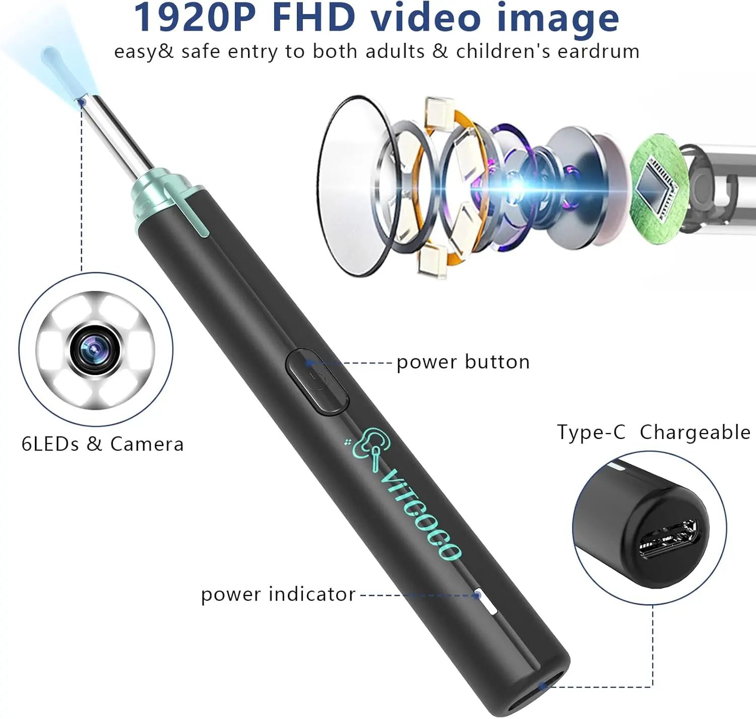 ·【High light led】Equipped with 6 high-brightness LED lights, 3.5mm inner diameter lens with 1920P full HD camera, which greatly enhances the brightness and sharpness of the image in ear canal. Making your earwax removal more completely and safely.