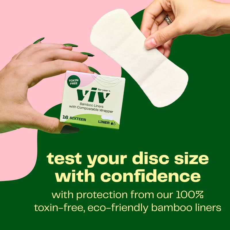 ·Box of 16 Viv Bamboo Liners: toxin-free & extra soft to catch any leaks while you try both Viv Disc sizes!