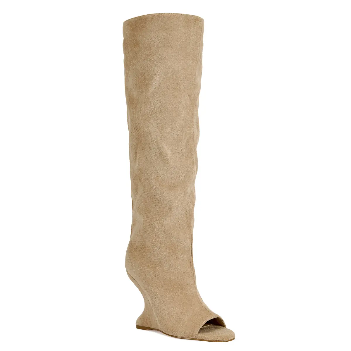 The open-toe design adds a subtle edge, making this boot perfect for transitional seasons and statement styling. Its streamlined shaft hugs the leg comfortably without feeling restrictive, while the wide-calf-friendly fit ensures ease, comfort, and confidence from day to night.