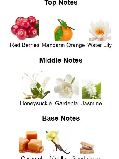 ·Fragrance Notes: Wild berries, mandarin, honeysuckle, gardenia, jasmine, vanilla, caramel, sandalwood.