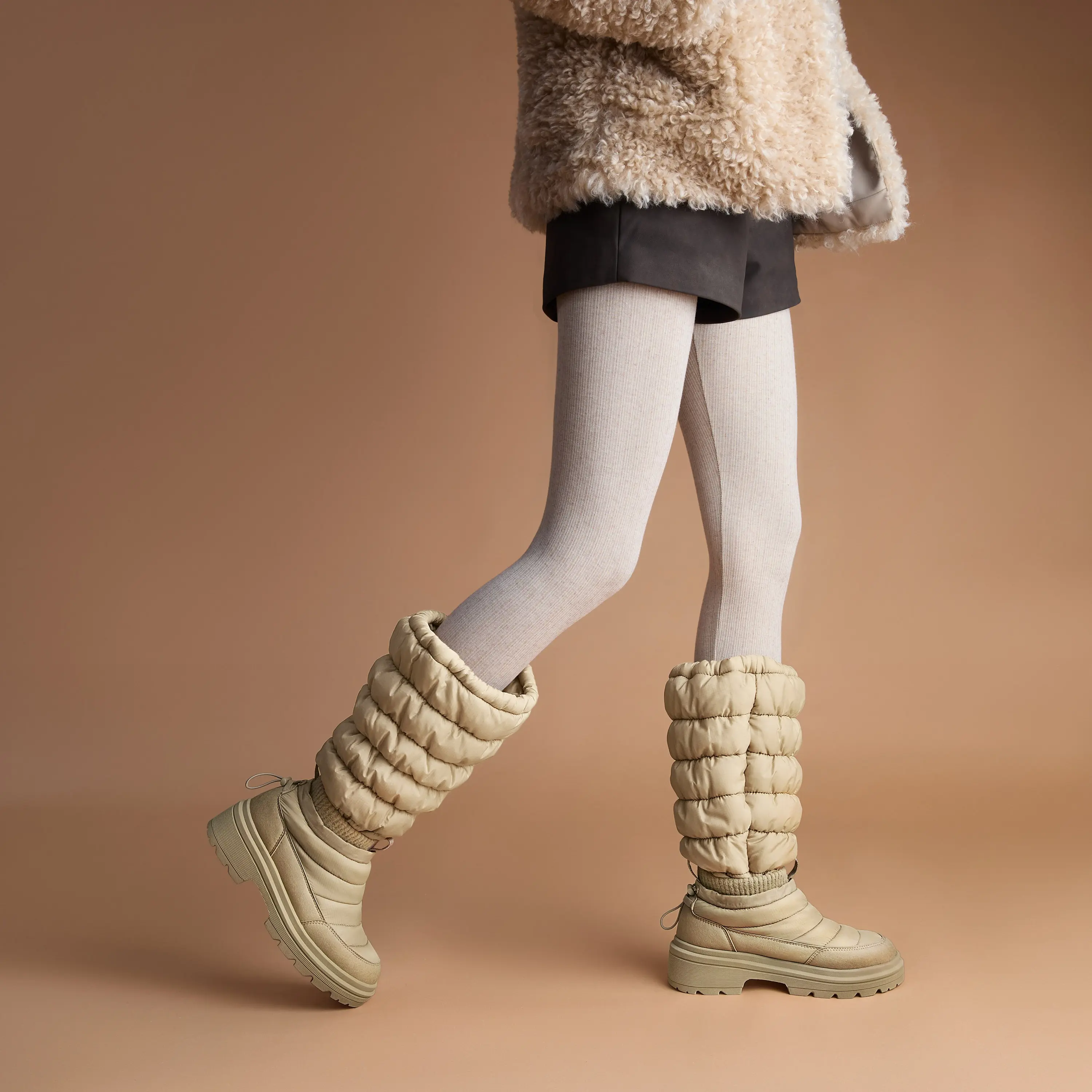 Introducing Puff Leg Warmers—the perfect blend of cozy warmth and effortless style. Crafted from eco-friendly recycled woven fabric upper and filled with premium silk insulation, these detachable boot cuffs keep you light on your feet while locking in the heat. Fold them, pack them, or mix and match colors to create your own winter look.
