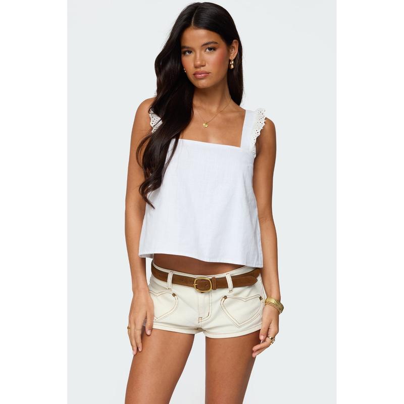 the most darling 100% cotton top 🤍 I’m 5’2 wearing a size small! #cottonclothing #tanktop #squarenecktop #summertops #tiktokshopcreatorpicks @Edikted
