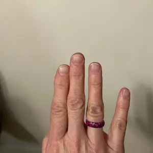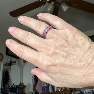 Really like this ring but wish it was a little thicker and the colors as bright as in the photo. It's cute and will attract attention.