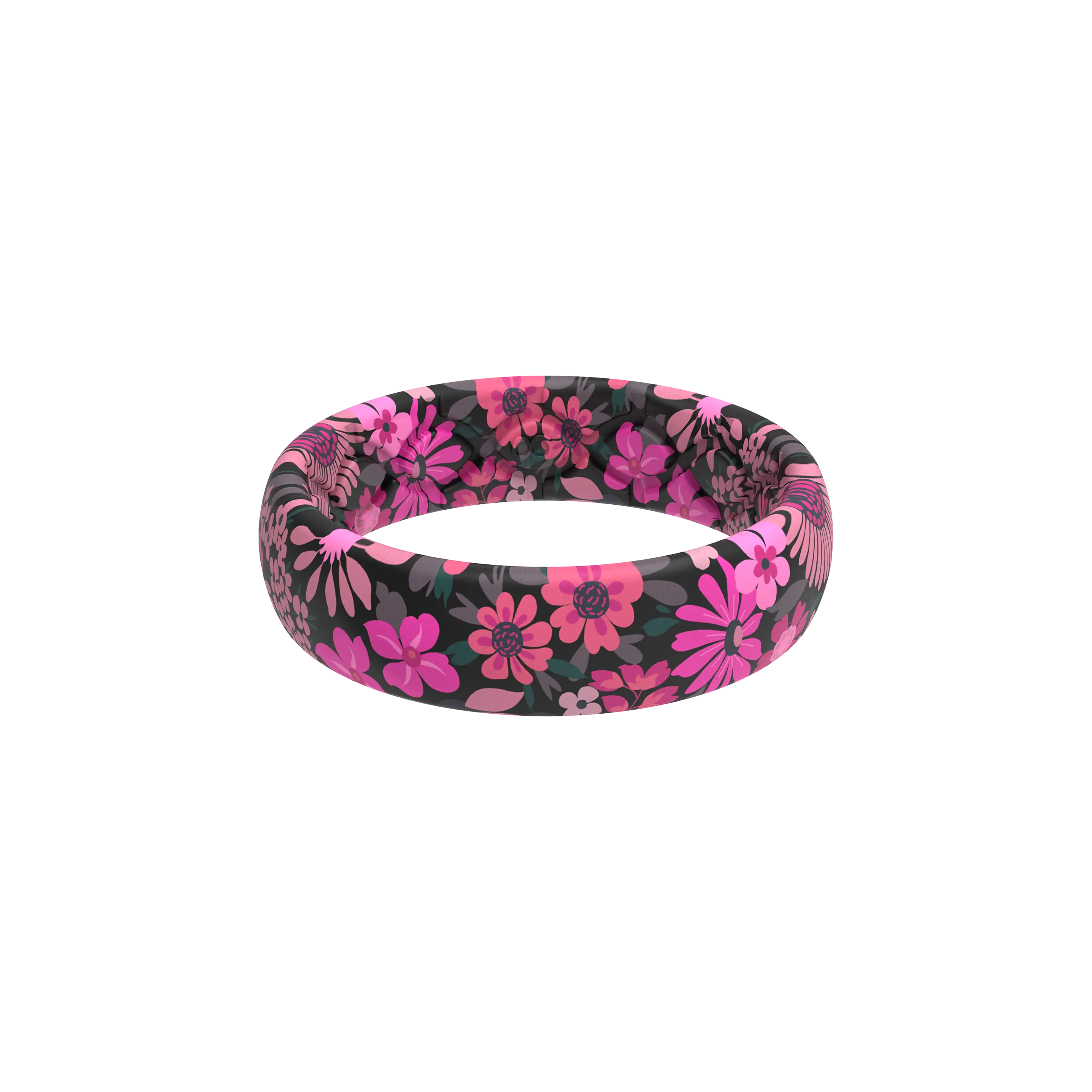 This ring is one of the softer feeling ones, the colors are bright, and the print is incredibly clear! It looks just like the millions of pink and white phlox that grow all over the pastures here in April and May! Plus, I'm a girl-mom of 3; so, this is perfect for me! I love it!