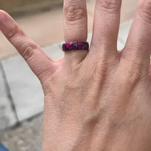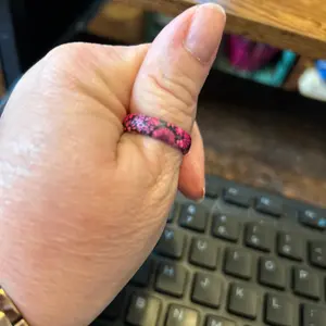 Nice shades of deep pink and fuchsia. This is my 3rd ring, and each one is special. I don't like wearing jewelry, except for my solar analog watch. Now I've add rings to what I wear everyday. It's nice seeing the ring on my hand and makes me happy, as opposed a necklace or earrings that only other people see, unless you're looking in the mirror. I also give Groovelife FIVE (5) Stars for their customer service!