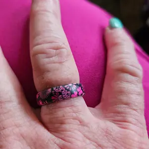 I love this ring so much! It’s perfect for lap swimming especially. And, I never take it off because i don’t even feel it on my finger. I’ve worn a lot of rings, but this is my favorite. The flowers and colors are spot on!
