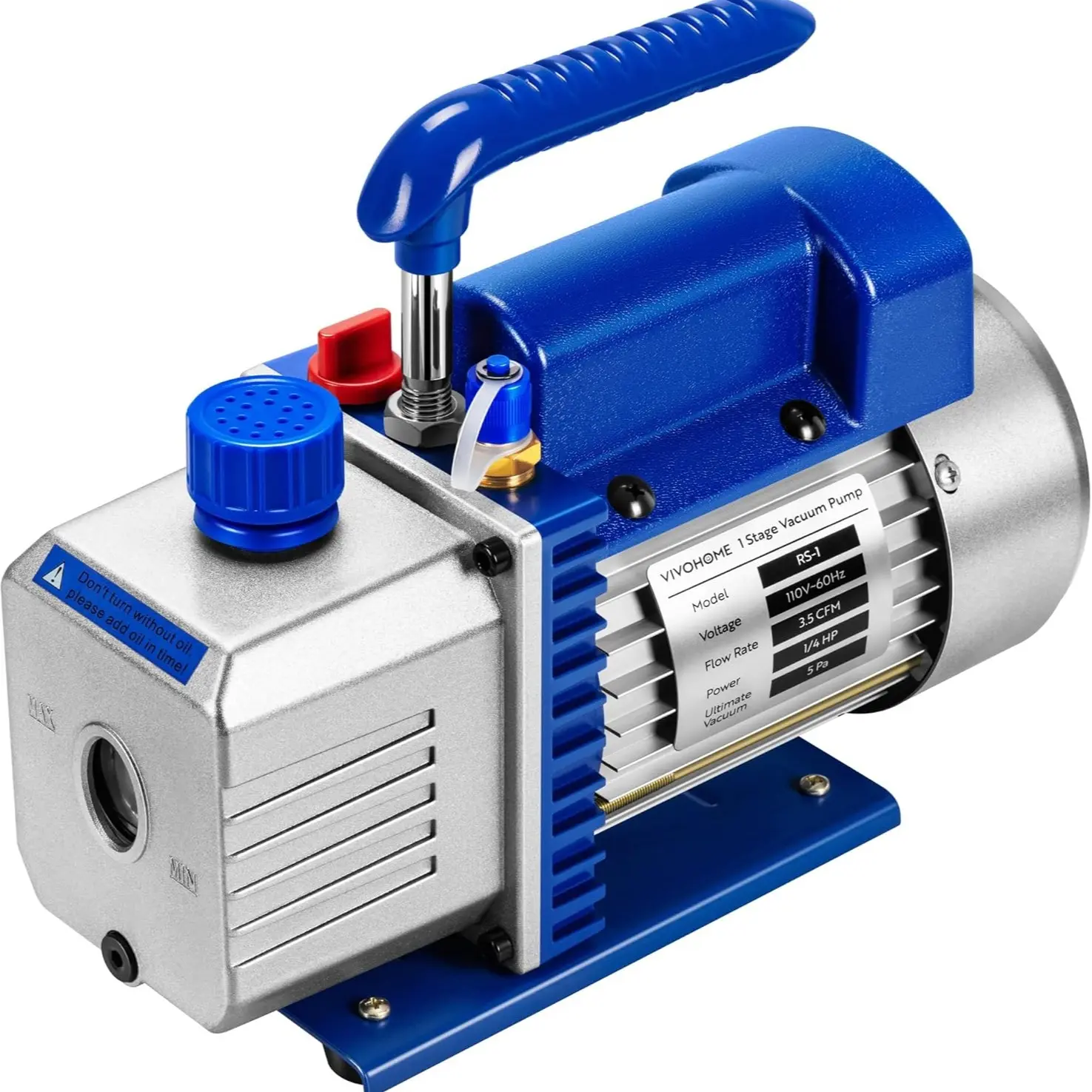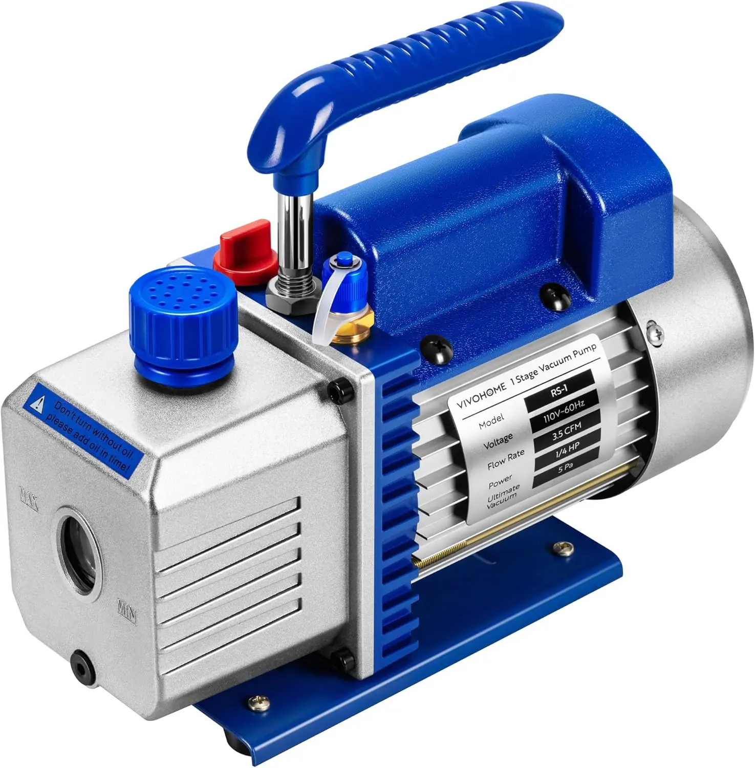 ·STABLE ROTARY VANE VACUUM PERFORMANCE: This single-stage rotary vane vacuum pump is powered by a 1/4 HP motor, delivering a 3.5 CFM flow rate and pulling systems down to 5 Pa for reliable air removal in automotive A/C applications