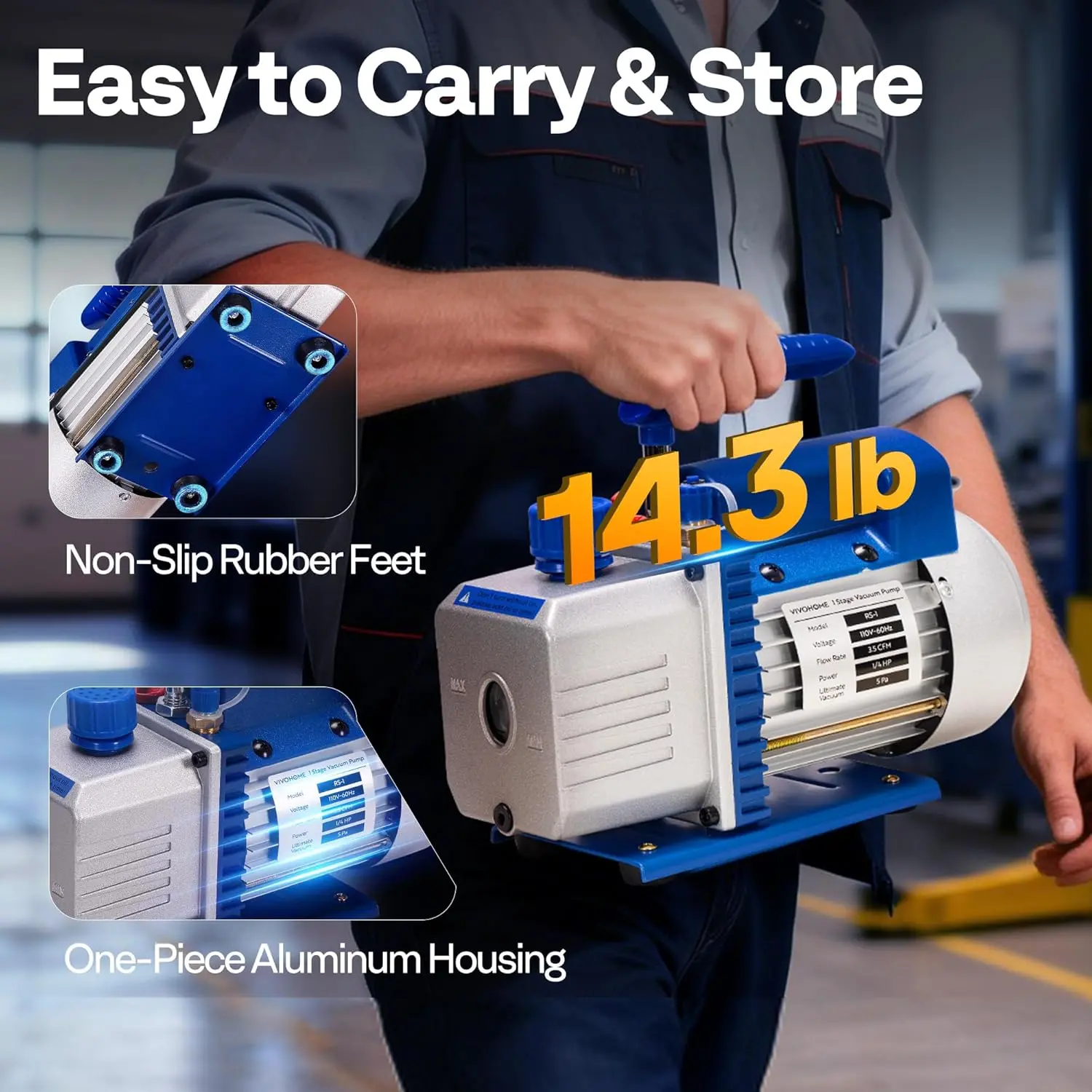 ·BUILT FOR AUTOMOTIVE A/C SERVICE: Designed for R134a, R12, and R22 systems, this vacuum pump kit delivers reliable performance for automotive A/C maintenance, making garage work, on-site repairs, and basic DIY service tasks easier and more efficient