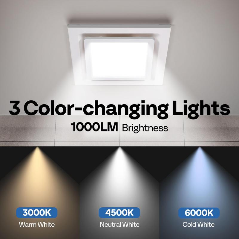 ·165CFM Exhaust Fan & 3 Color Light (3000K/4500K/6500K) & 2.5 Sone