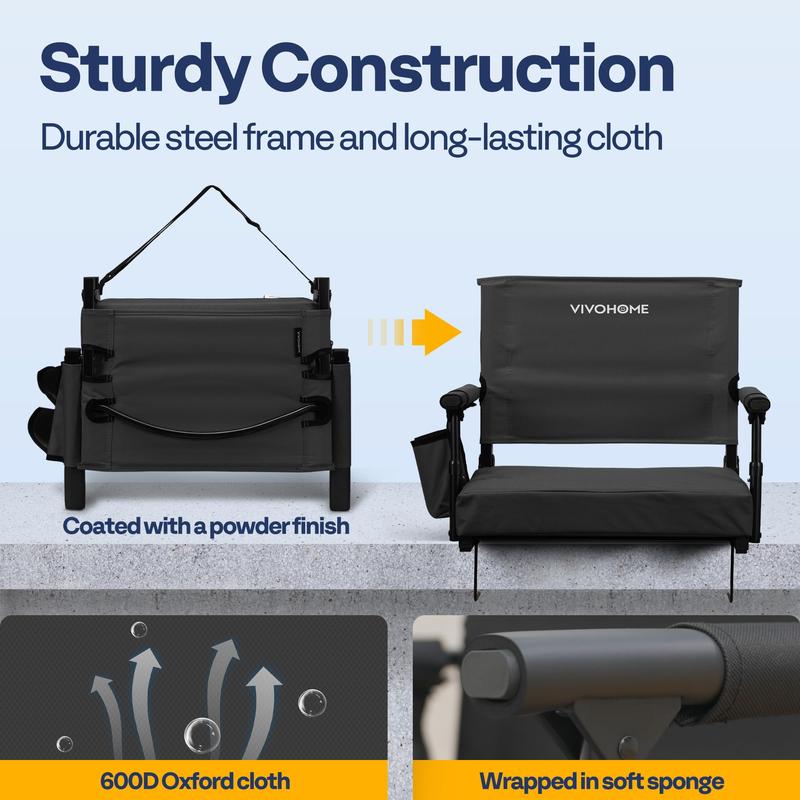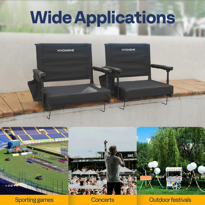 HEIGHT ADJUSTABLE BACK SUPPORT: VIVOHOME stadium seats offer two adjustable back support heights, switching between 20.1 in and 23.6 in; It also features height-adjustable armrests with two settings, 6.7 in and 9.4 in, allowing you to adjust them to suit your preferred sitting posture