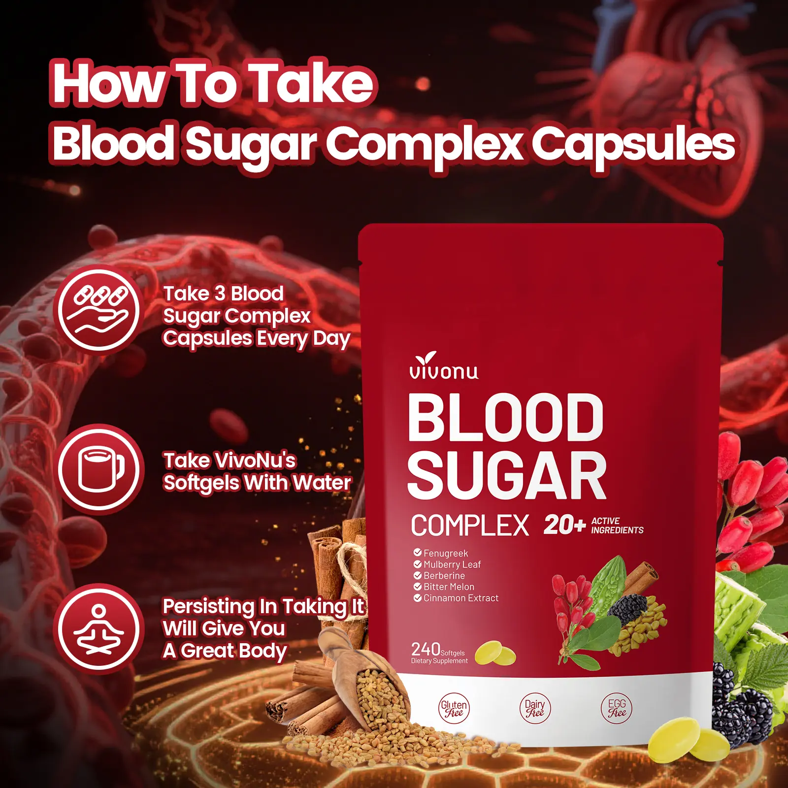 VIVONU BLOOD SUGAR is a thoughtfully crafted blend of plant-based extracts designed to support your body’s natural balance. This daily-use formula focuses on four key areas: supporting blood sugar stability, enhancing antioxidant defense, aiding metabolic function, and improving nutrient absorption. Ideal for those seeking plant-powered wellness.