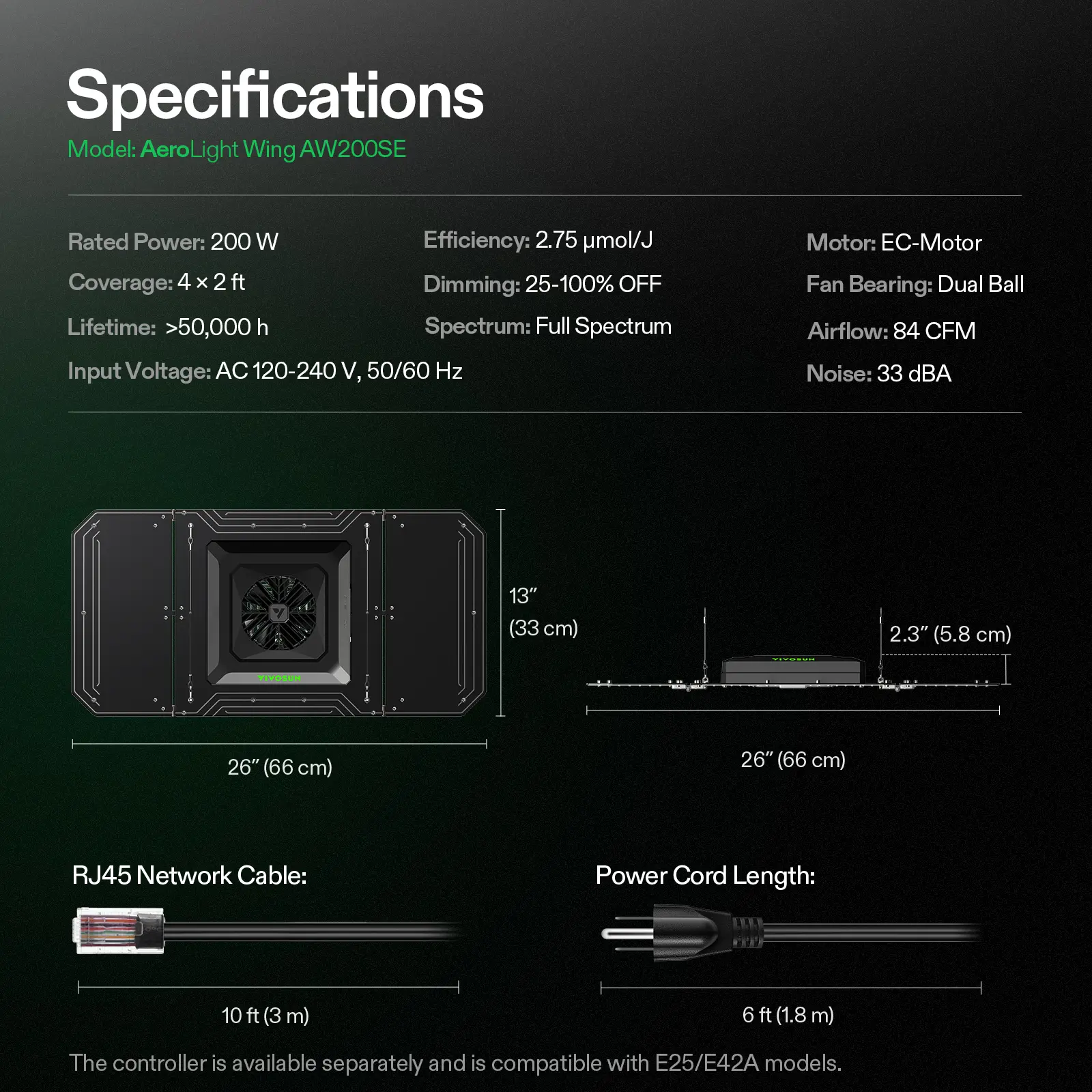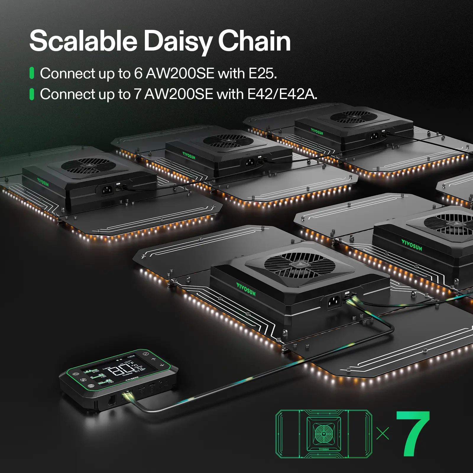 ·Integrated Circulation Fan: The centrally located circulation fan in the LED balances airflow where other fans cannot reach, allowing more air to enter the canopy directly; To unlock additional features, the fan must be used with the Vivosun Growhub Controller (E42, E42A, or E25), available for separate purchase