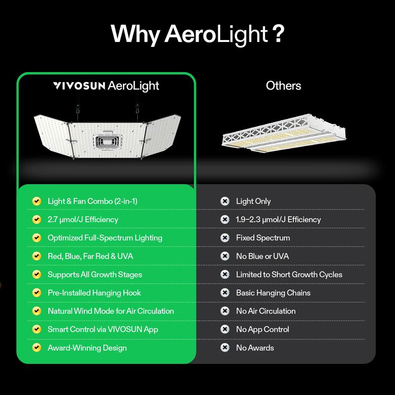 ·Uniform Light and Air: The unique hollow light allows the air to circulate more efficiently; The special air-guiding designs incorporate angles that direct wind uniformly across the plant canopy; The wider LED coverage allows light to be distributed more evenly and reach more areas, creating better light conditions for plant growth
