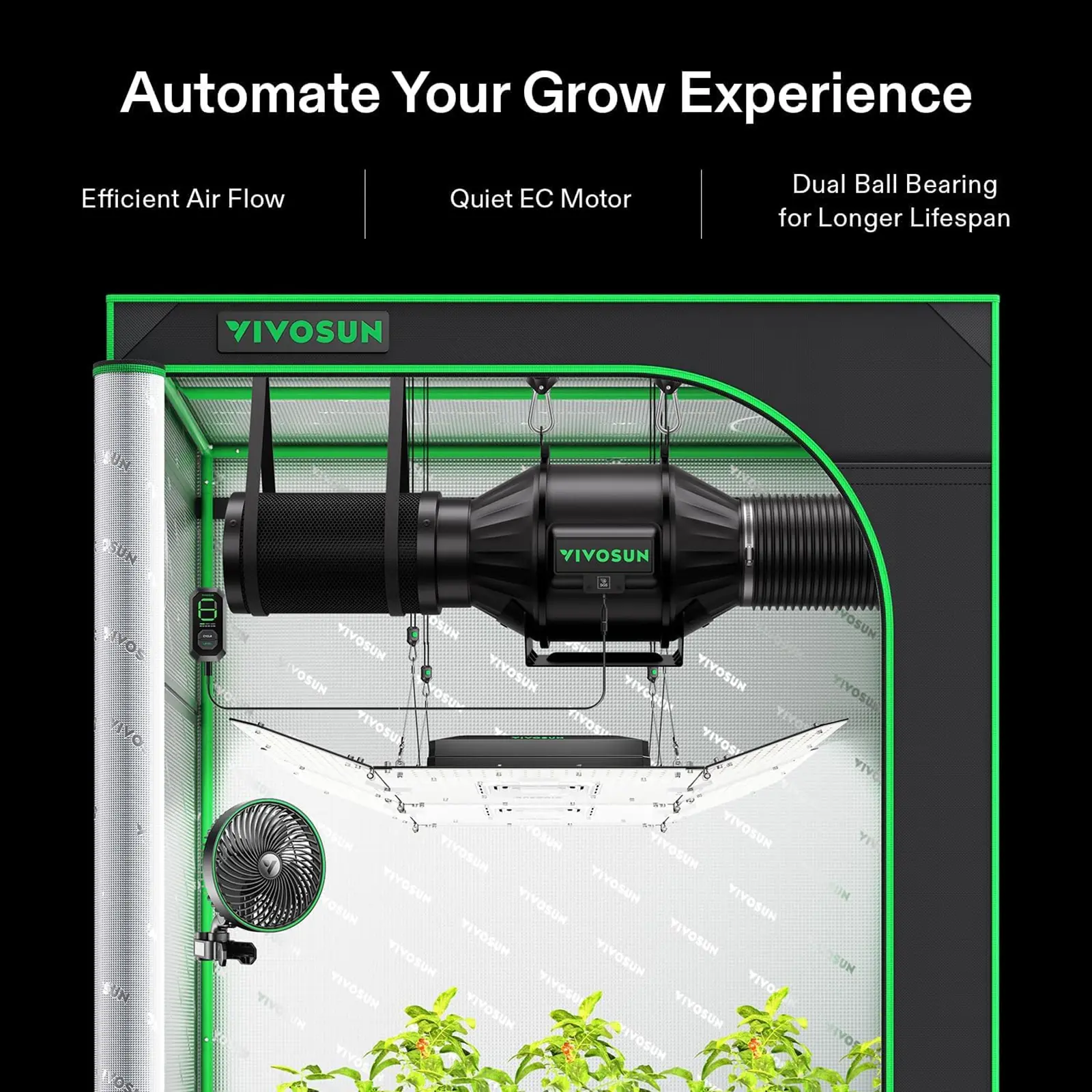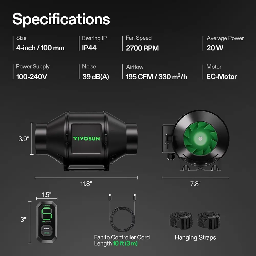 ·Efficient Ventilation: AeroZesh T4/T6/T8/G4/G6/G8 Create optimal ventilation for your grow space; A PWM controlled EC fan with mixed-flow design that is fully adjustable and responsive to the environment