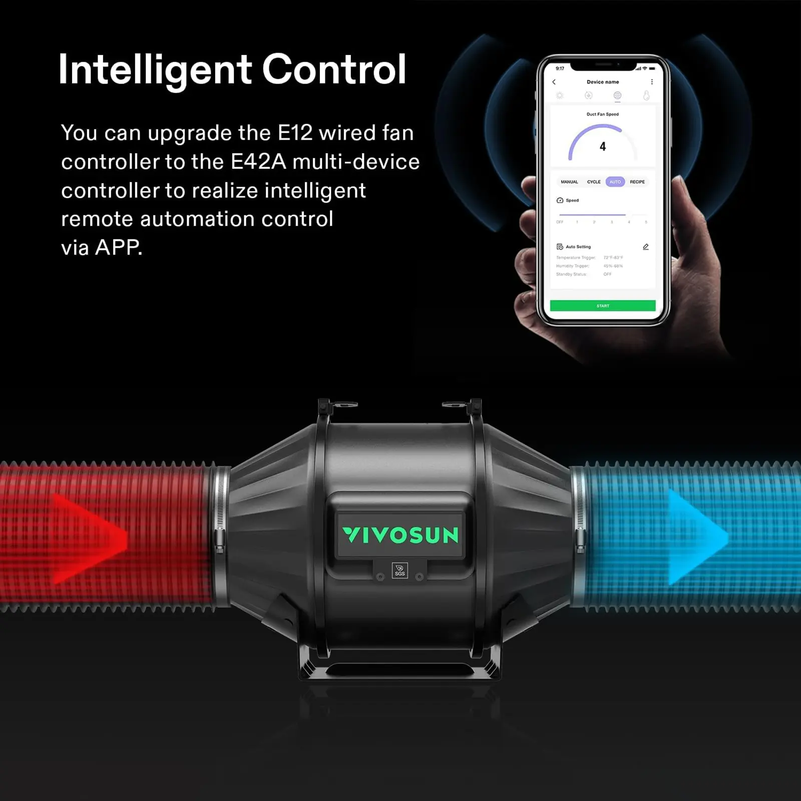 ·Entirely Programmable: You can upgrade the E12 fan controller to an E42A multi-device controller for more functionality; The GrowHub controller can be integrated with the App system for intelligent remote control of remote automation via the App