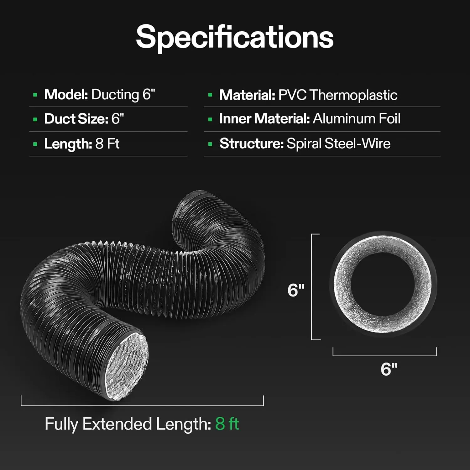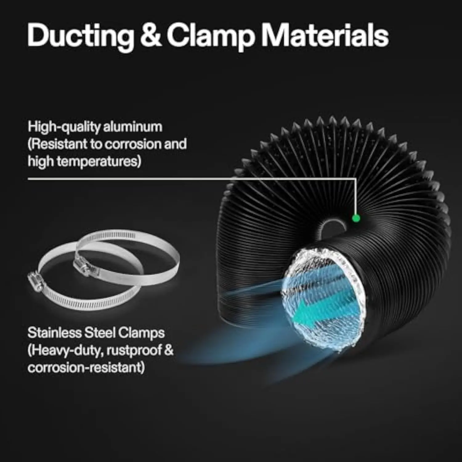 ·Flexible and Convenient: Thanks to the built-in steel wire, the length and shape of this ducting is flexible to change for fitting exhaust fan blower or inline fan; Being portable and lightweight, it can be installed at any place; Comes with 2 duct clamps in the same duct opening size for easy setup and securer connection