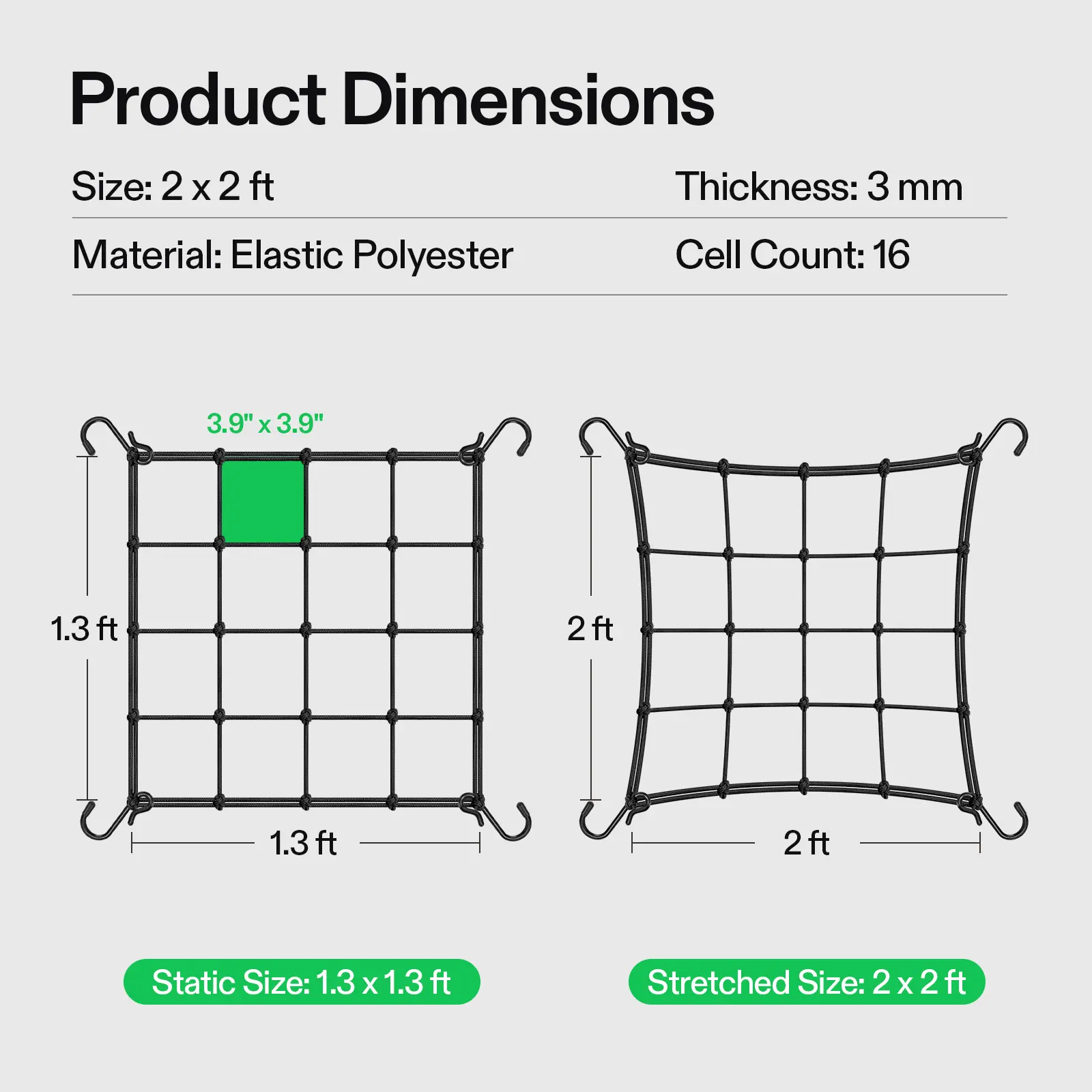 ·Reusable and Versatile: Measuring 3mm in diameter, Vivosun uses ultra-durable elastic thread in the elastic fabric cover and 4 rustproof "S" hooks measuring 22mm in width; You can easily fold it up and store it away after use