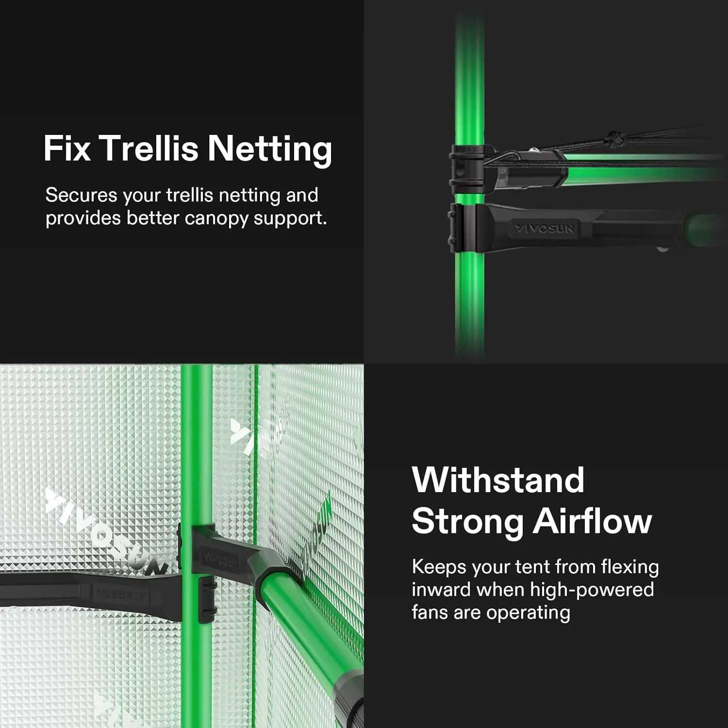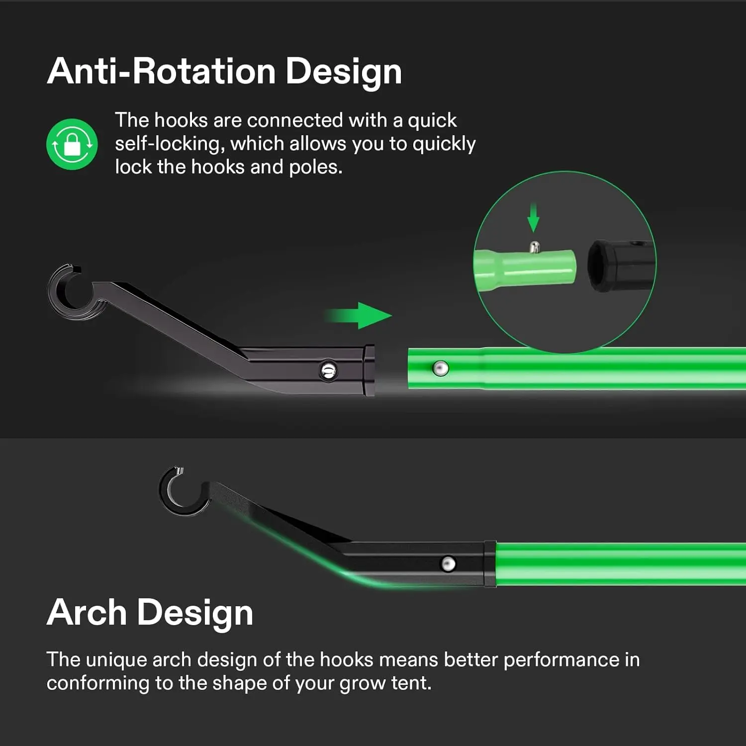 The unique arch design of the hooks means better performance in conforming to the shape of your grow tent; adjustable and expandable with your grow space and perfect for your CFM ventilation system