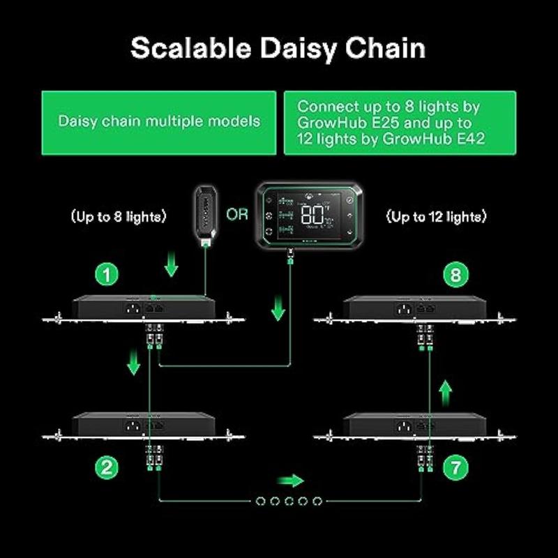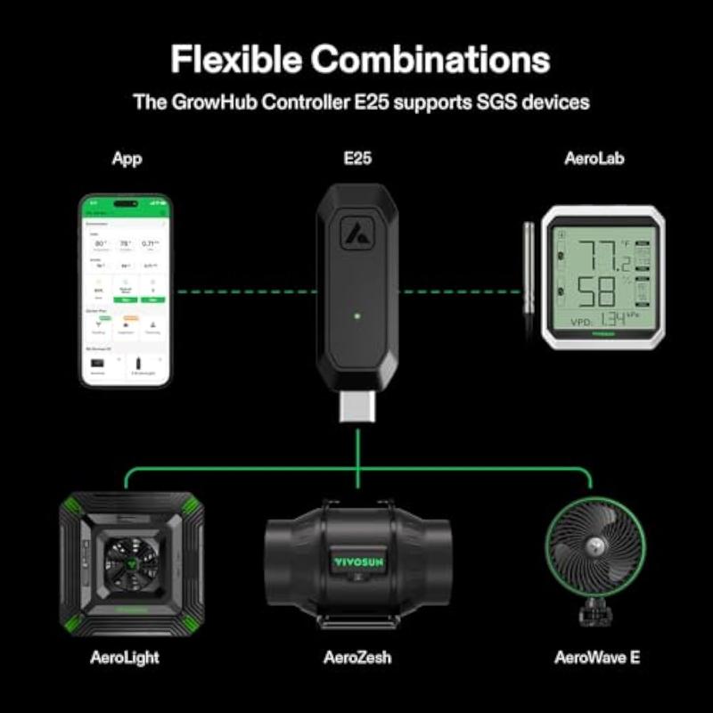 ·Flexible Combinations: The GrowHub Controller E25 supports SGS devices like the AeroLight, AeroZesh, and AeroWave E, allowing you to freely combine devices in your grow tent; With RJ45 cables, you can connect multiple AeroLights